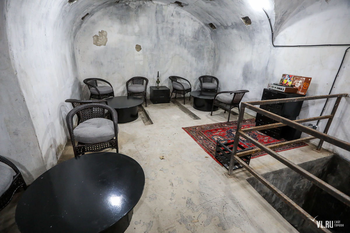 Раньше здесь располагались укрытия для личного состава. Каземат двухуровневый – внизу находился пороховой погреб. Сейчас в него можно спуститься, но погреб пока пустой. В дальнейшем в нём могут открыть экспозицию или сделать ещё одну зону отдыха.