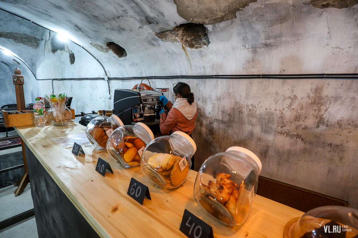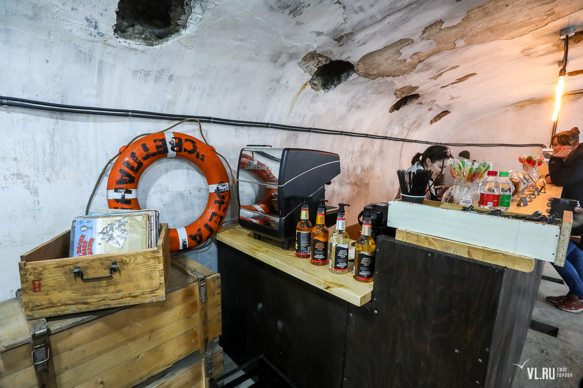 В самом визит-центре можно выпить кофе, который варят приветливые бариста, а также перекусить. Здесь продают различные виды печенья и круассаны. В будущем, возможно, ассортимент расширят. Внутри стоят столики, можно отдохнуть. На улице тоже установили несколько столов. Интерьер в каземате специально сильно не меняли и не делали современным. Там стоят керосиновые лампы, а из советского патефона звучит музыка разных эпох.