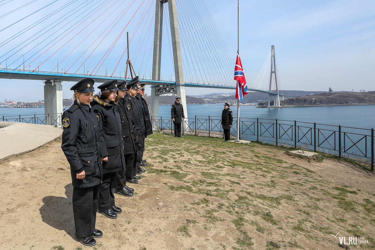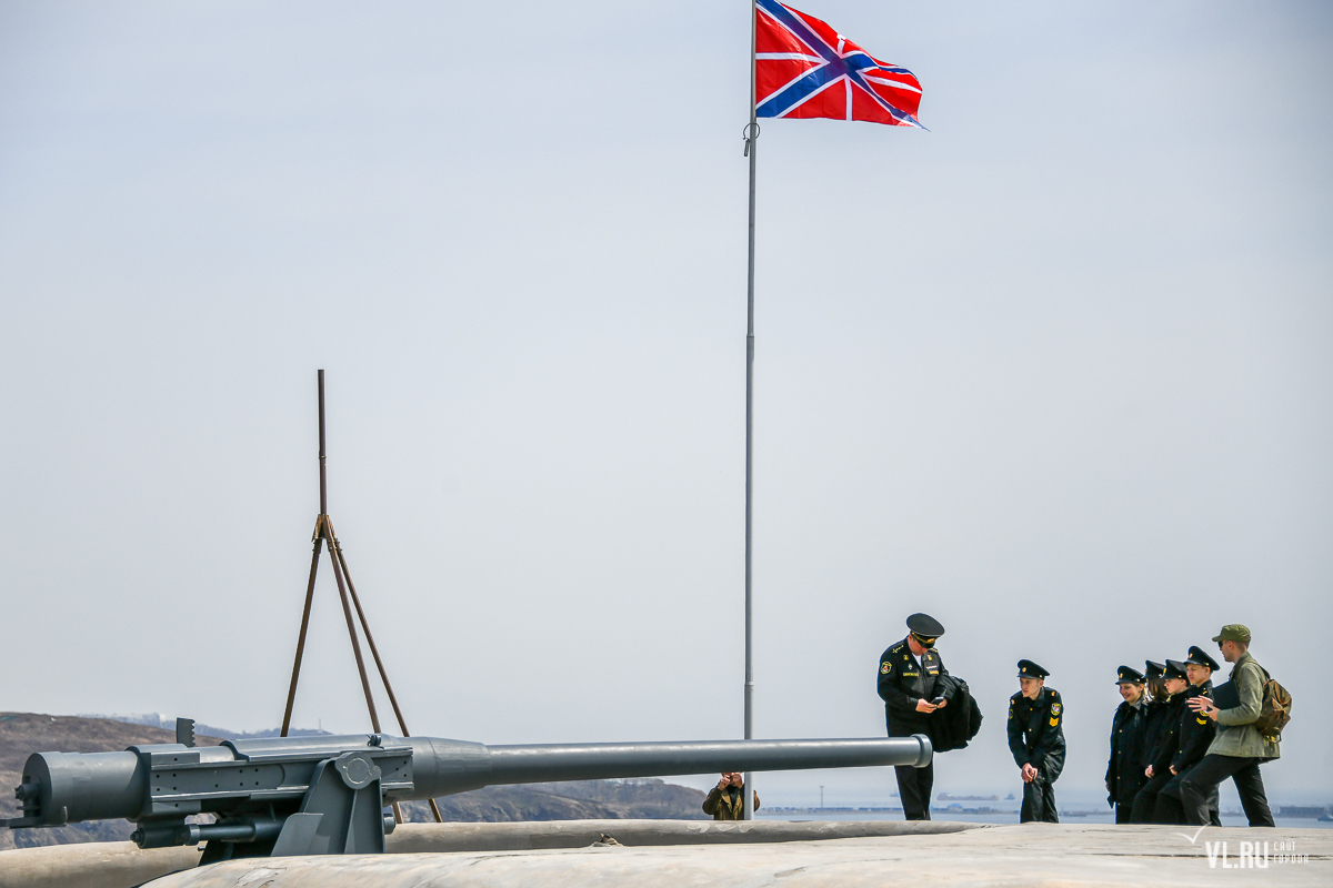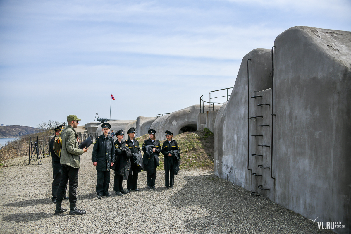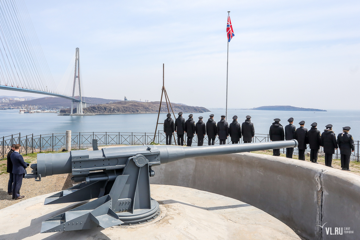 В честь открытия визит-центра начала нового туристического сезона курсанты ТОВВМУ под звуки полуденного выстрела из пушки подняли над батареей крепостной флаг.