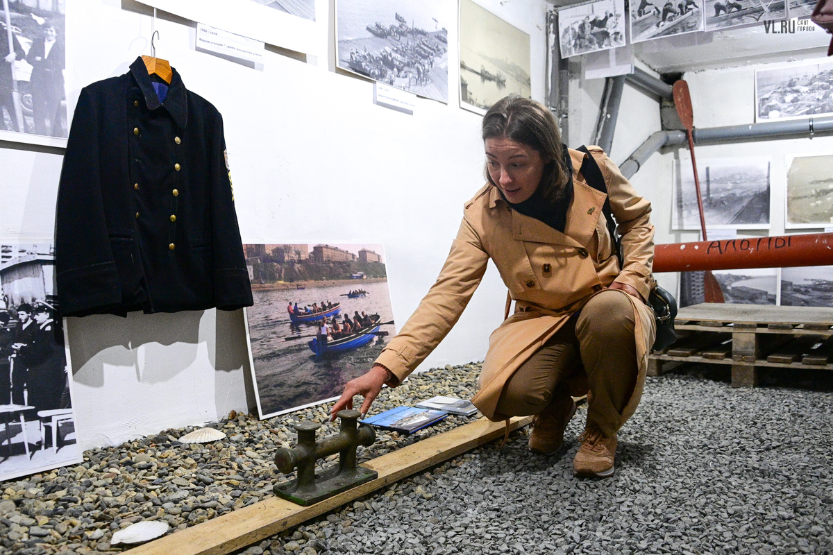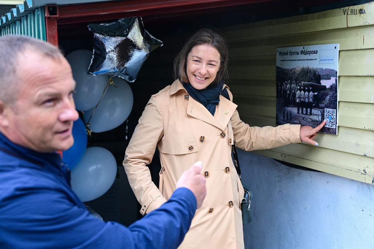 Первое рабочее мероприятие в графике поездок – в 11:30 – открытие музея бухты Фёдорова в подвале дома на Станюковича, 54г. Инициативные горожане создали его на собственные средства, и теперь здесь в пространстве из четырёх залов выставлены фотографии бухты, сделанные в разные годы, занятные артефакты, которыми поделились местные жители, например, советский флотский китель, голова и хвост «дракона», спортивные медали, книги и многое другое. Даже едва пролезшее в отреставрированный подвал весло – подарок курсантов расположенного по соседству МГУ им. Г. И. Невельского.