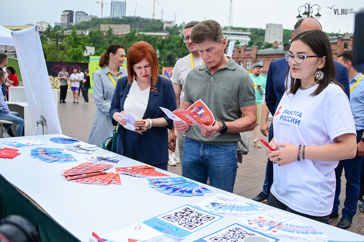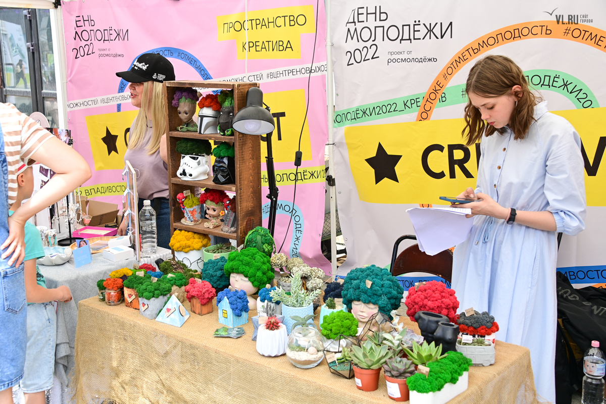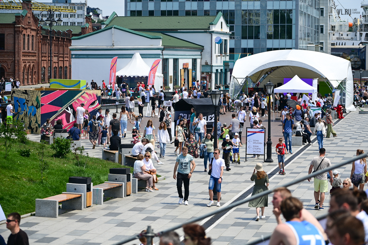 День молодёжи в воскресенье, 26 июня, объединил на набережной Цесаревича около 100 разнообразных площадок, акций и мастер-классов. Посмотреть и поучаствовать изначально захотели 25 тысяч горожан – такое количество людей зарегистрировалось на онлайн-площадке, – а в итоге пришли более 30 тысяч гостей. Пожалуй, обязательная регистрация стала единственным заметным минусом организации. Для тех, кто попал на набережную в этот день, подготовили очень яркую и насыщенную программу. По сведениям городской администрации, этот День молодёжи стал самым масштабным в истории Приморья.