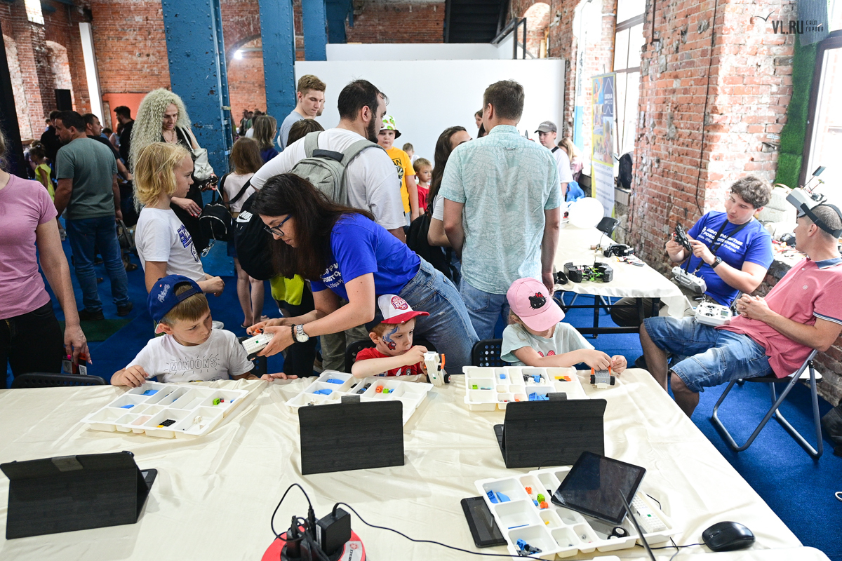Будущее Приморья, собственно, можно было увидеть как раз на этой локации – образовательный павильон собрал самые разносторонние направления деятельности, которыми интересуется (или может заинтересоваться) молодёжь. Стремительно сменяли друг друга мастер-классы: вот гостям наглядно показывают, как «лепит» модель 3D-принтер, затем здесь же объясняют композицию хорошего фотоснимка.