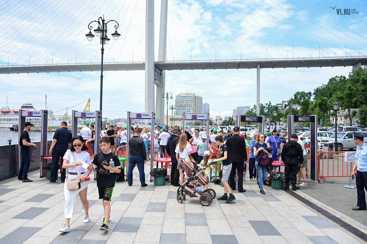 Вопросы антитеррористической защищённости давно отодвинули в сторону антиковидные ограничения, и, видимо, в обозримом будущем приморцам придётся мириться с рядом неудобств. Так, вход на площадку проведения массового праздника в воскресенье, 26 июня, был совершенно бесплатным, но в течение первых нескольких часов пропускали только тех, кто зарегистрировался. Более того, горожанам запретили приезжать на территорию на электросамокатах и брать с собой ёмкости с водой.