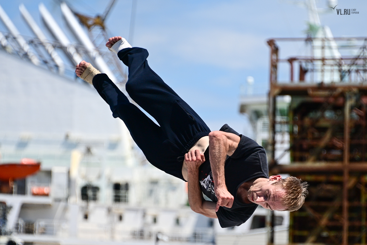 «Обычно такие конструкции неделю строятся, но мы успели за несколько дней: приходили утром, уходили поздно ночью. Сегодня здесь более 20 участников – из-за высокой сложности самой фигуры отбирали тех, кто сможет с ней справиться. Возраст участников от 13 до 28 лет», – рассказал Дмитрий Пискунов, представитель федерации экстремальных видов спорта Приморского края.