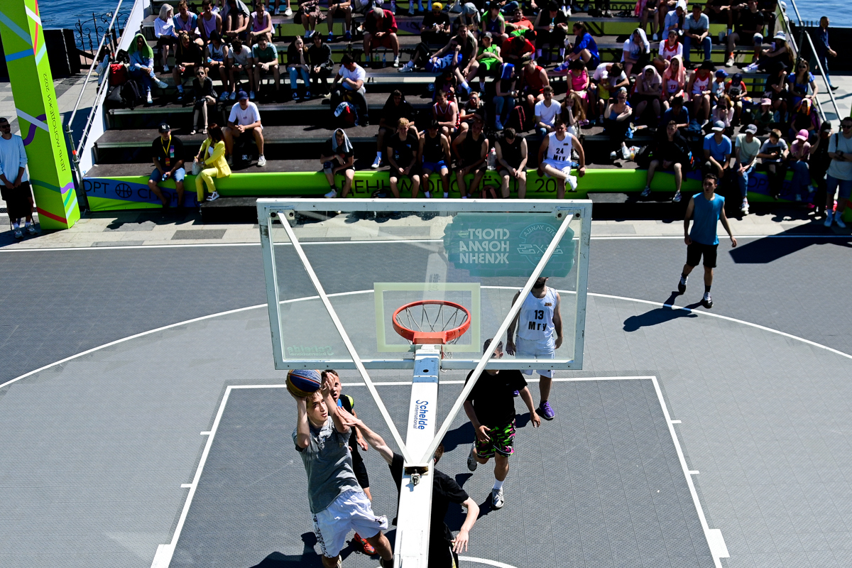 В то время как любители экстрима взлетали на несколько метров в воздух, разгоняясь на трамплине, рядом совершали «затяжные прыжки» к корзине баскетболисты: здесь провели турнир в формате «3 на 3».