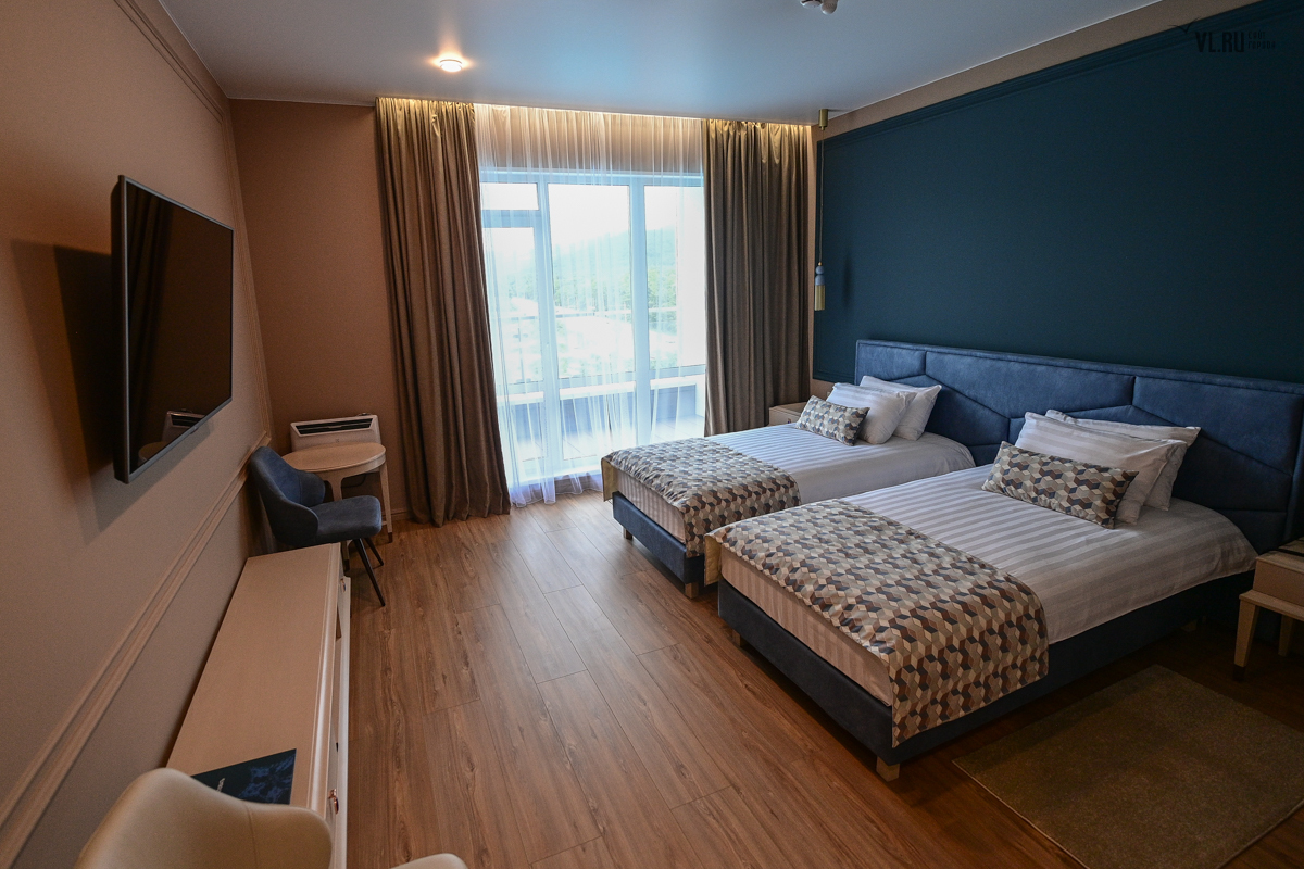 Существенно сэкономить помог статус резидента свободного порта – Владивостокская таможня без уплаты таможенных платежей оформила 244 тонны иностранных товаров для строительства гостиницы статистической стоимостью 526 тысяч долларов США. В основном это строительные и отделочные материалы, а также лифты, электрогенераторы, отделочные керамические плиты, осветительное оборудование, сантехника. Отель построили не на первой линии пляжа, поэтому окна даже самого дорогого полулюкса выходят на крыши деревянного городка отдыха и супермаркета. Собственного выделенного пляжа или бассейна у отеля нет, гостям придётся пользоваться услугами общественного. Спа-комплекс на первом этаже пока не работает, обещают запустить только осенью.
