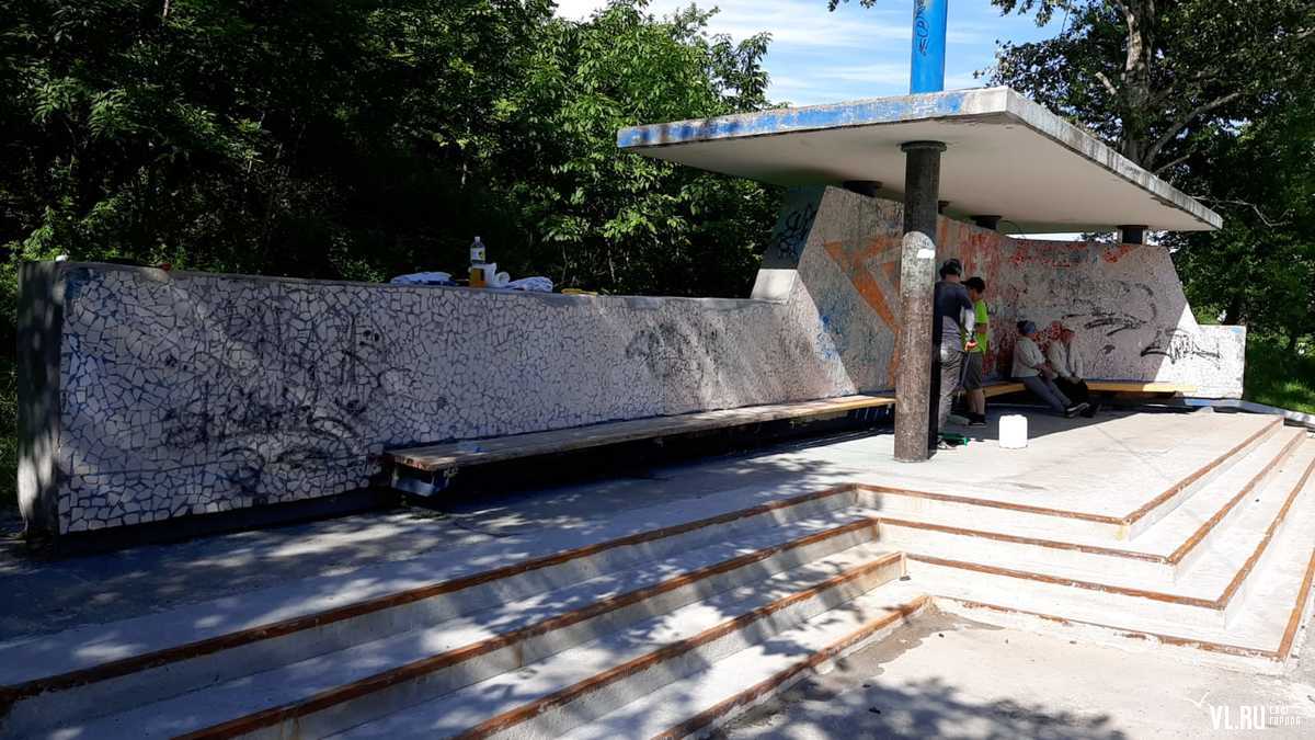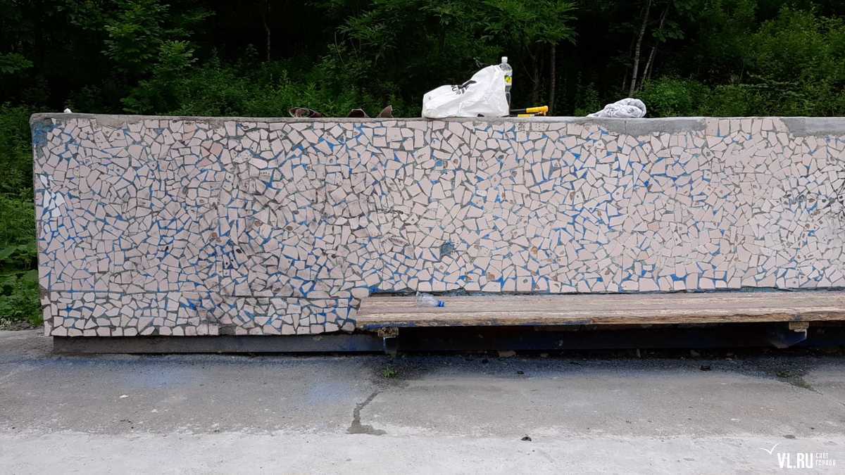 «Краевая администрация и городские службы выезжали на основные площадки «Детей Азии», смотрели, что там можно улучшить. Посмотрели остановку «Емар» (рядом находится ВДЦ «Океан», где будут жить и тренироваться участники. – Прим. VL.ru), она давно нуждалась в ремонте. А мэрия предложила провести полноценную реставрацию – там под несколькими слоями краски советская мозаика. В рамках текущего ремонта наше дорожное предприятие «Примавтодор» сначала восстановило лестницу к павильону, отдельные бетонные части и штукатурку там, где это требовалось. После этого начали работать художники. Сейчас они очищают остановку от старой краски, после чего восстановят недостающие элементы мозаики и покрасят заднюю стенку, там, где нет панно, в тон композиции», – рассказала ведущий специалист КГКУ «Примуправтодор» Оксана Безрученко.
