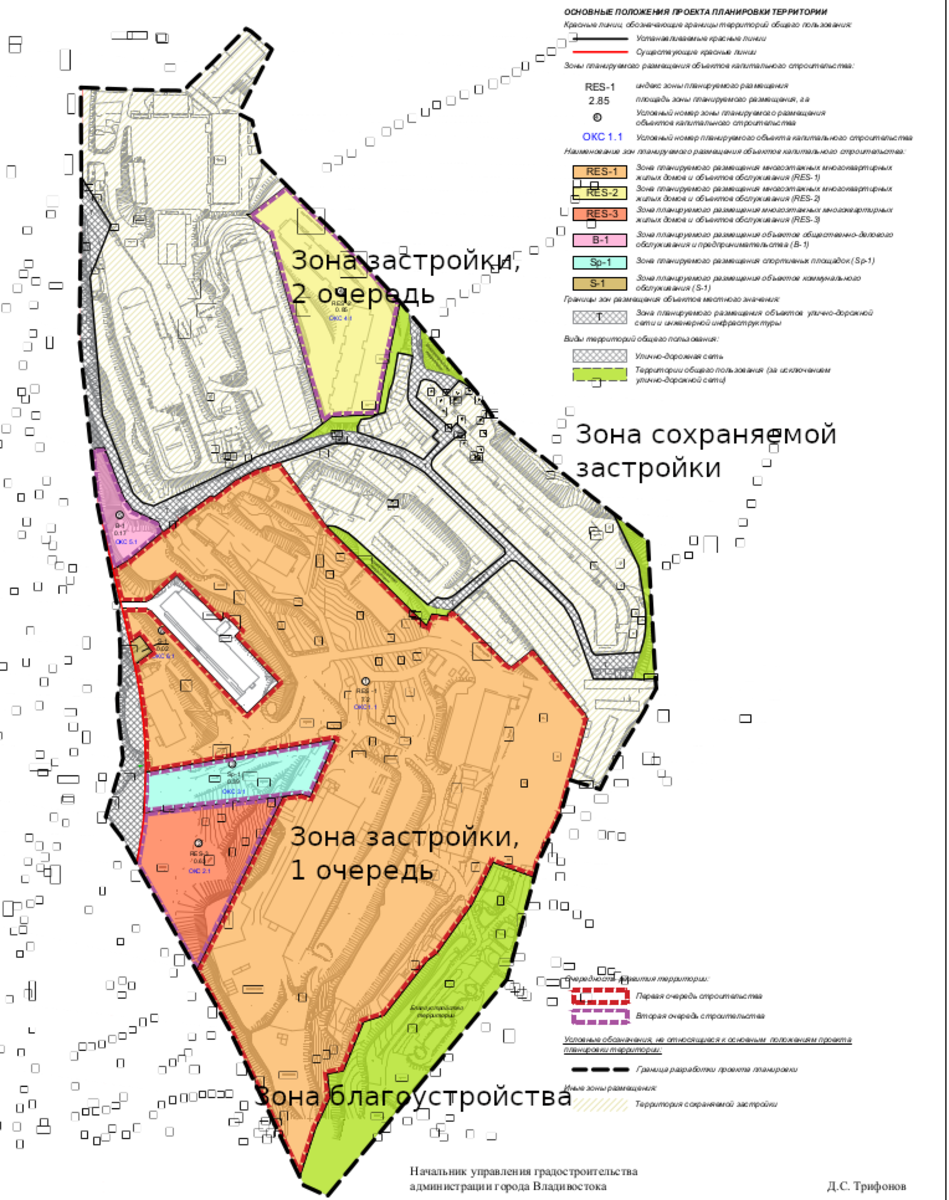 Более того, площадь под комплексное и устойчивое развитие составляет 18,5 га, из которых 2/3 территории уже фактически заняты сложившейся застройкой, один гектар находится в запретной зоне военного лесничества, ещё один – охранная зона объекта Владивостокской крепости. Соответственно оставшаяся площадь, пригодная к освоению, составляет 2,28 га, что менее 15% от всей территории, определённой постановлением под комплексное развитие. ООО «СЗ «Соболь» просило отменить постановление о ППТ, чего, видимо, не произошло. А заодно решили исключить из Генплана планируемые к размещению садик и стадион – их в проекте нет.