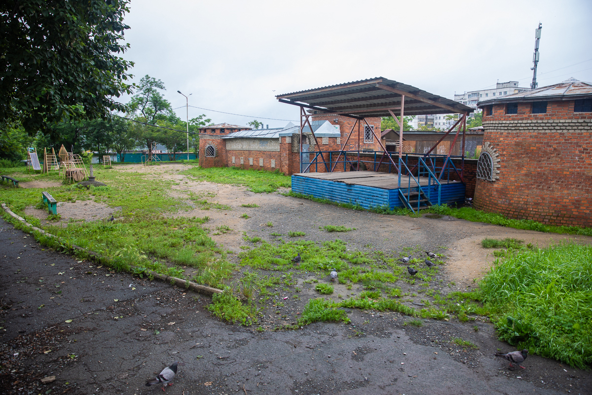 Сегодня на так называемой площади Трудовой стоят несколько заброшенных торговых павильонов, детская площадка небезопасна и требует ремонта, сцена тоже находится не в лучшем состоянии и вызывает много вопросов у местных жителей.