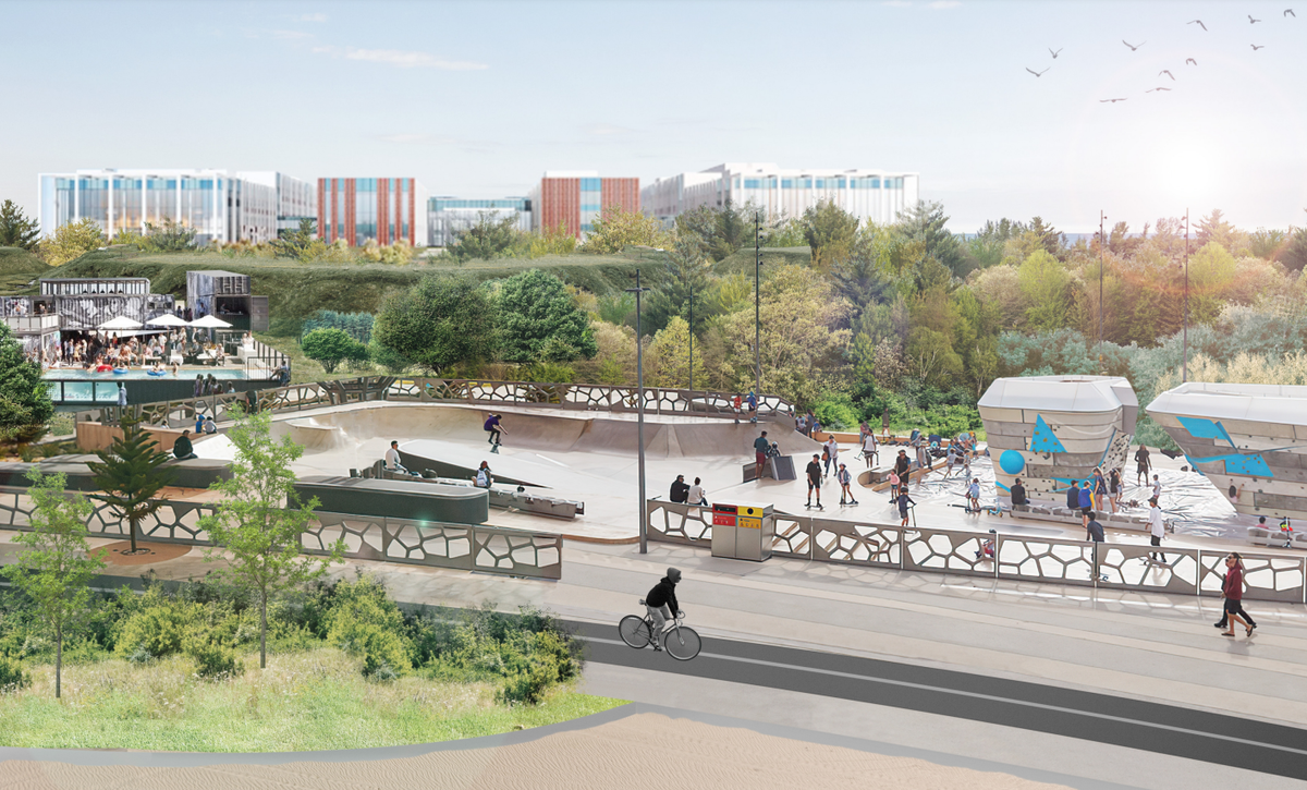 В молодёжной зоне появятся кафе, коворкинг и лекционная площадка. Также здесь будет предусмотрена экстрим-зона, где разместят памп-трек, зону для занятий воркаутом и тренажёры.