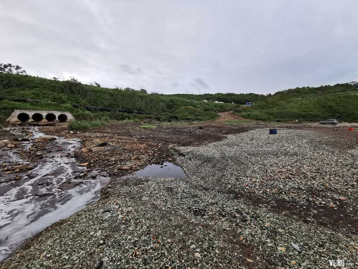 Речь идёт о ручье Безымянном, впадающем в Уссурийский залив рядом с бухтой Стеклянной. Пляж тут тоже покрыт битым стеклом. Ручей протекает под Шаморовской трассой по нескольким водопропускным трубам и впадает в море.