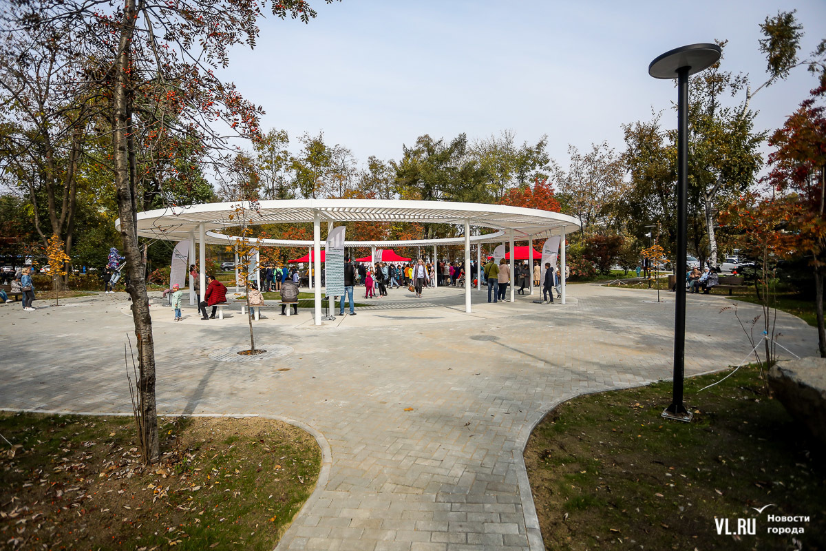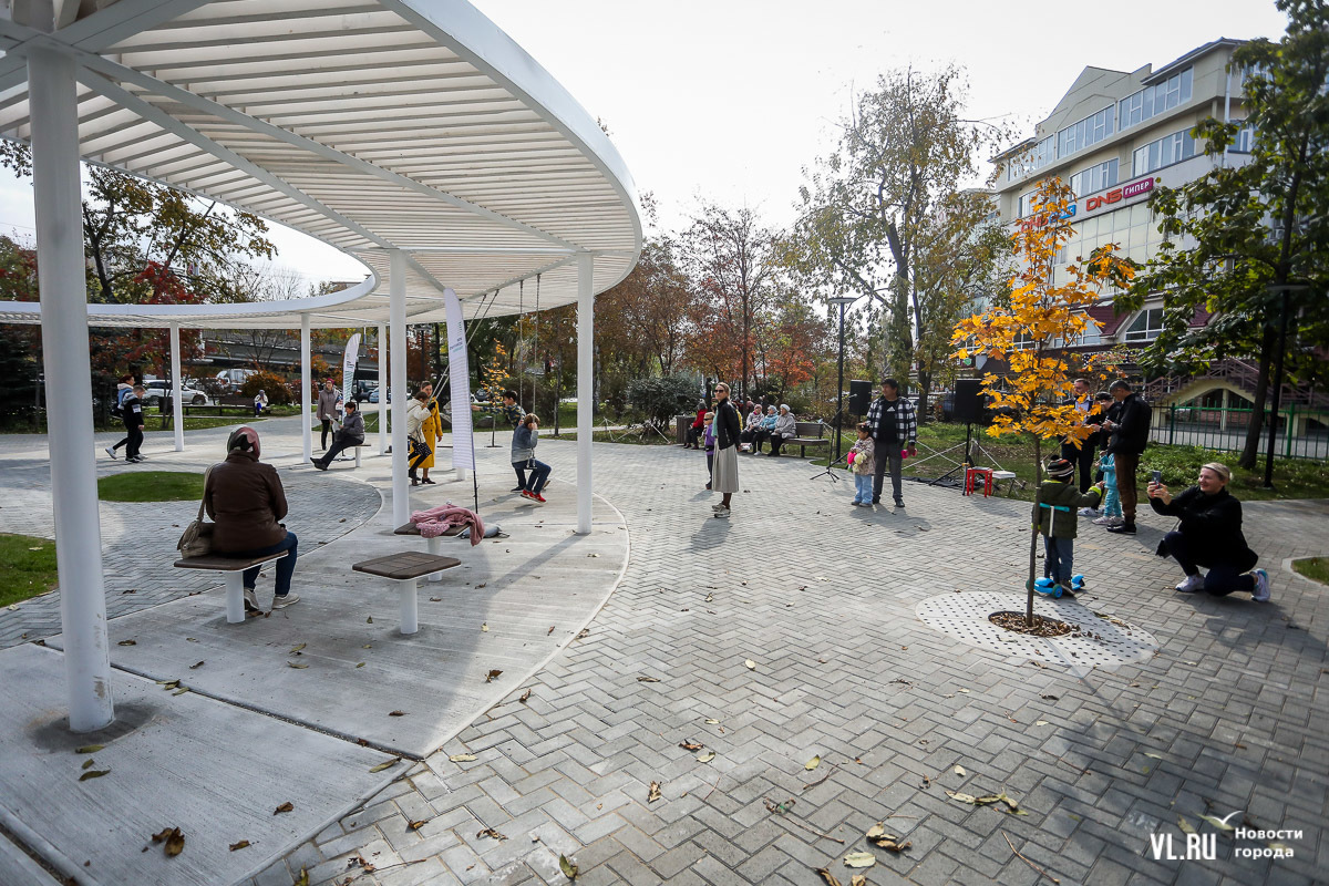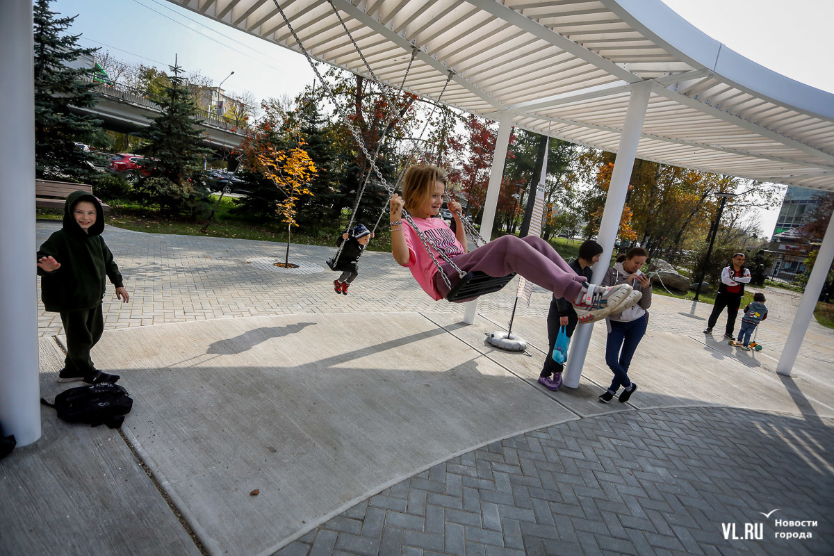 В воскресенье, 16 октября, во Владивостоке после реконструкции открыли сквер на Русской, 46 – горожанам он больше известен как «сквер с китёнком» из-за большой скульптуры морского млекопитающего, появившейся здесь в девяностых. Фигуру, за которой долгое время никто не ухаживал, во время ремонтных работ снесли. Теперь центральную часть сквера украшает высокая круговая пергола – белый навес, под которым разместили качели и места для отдыха.