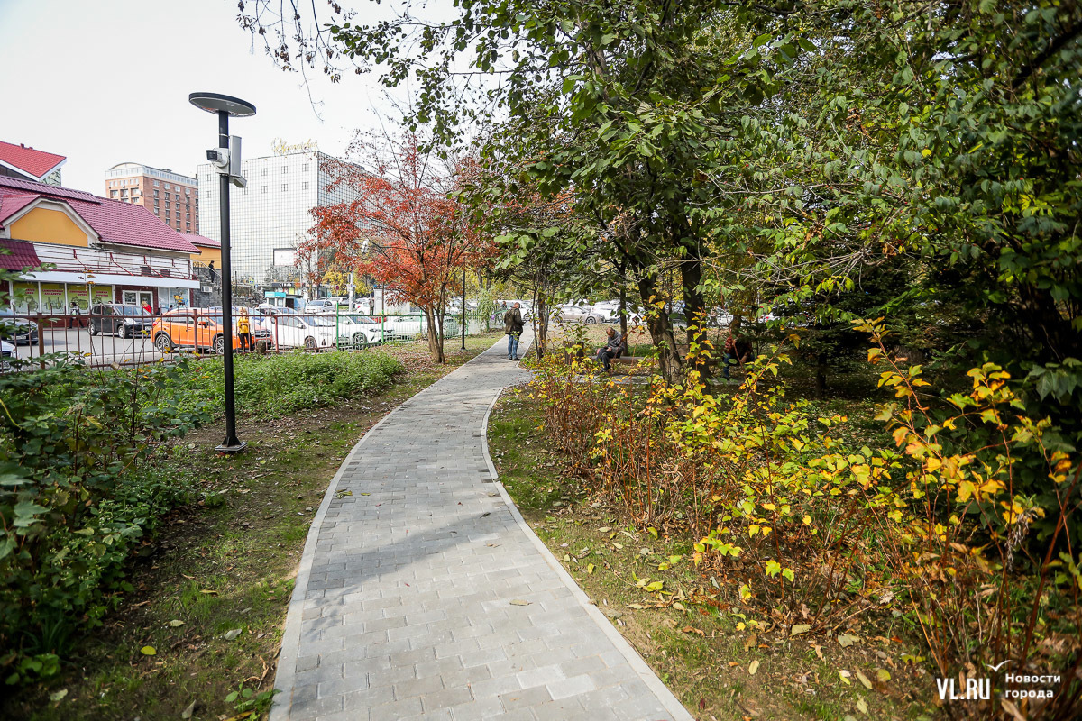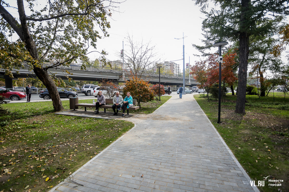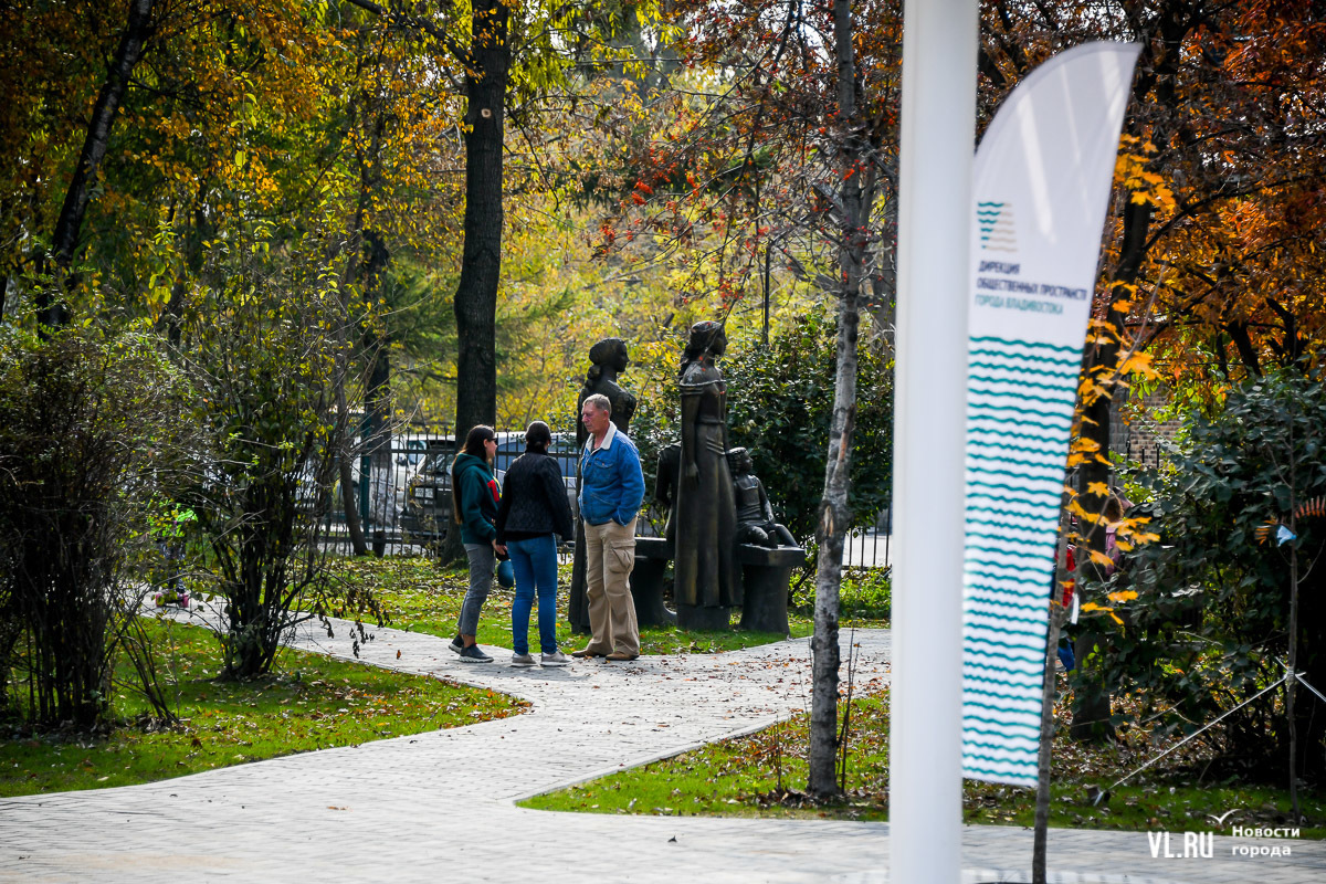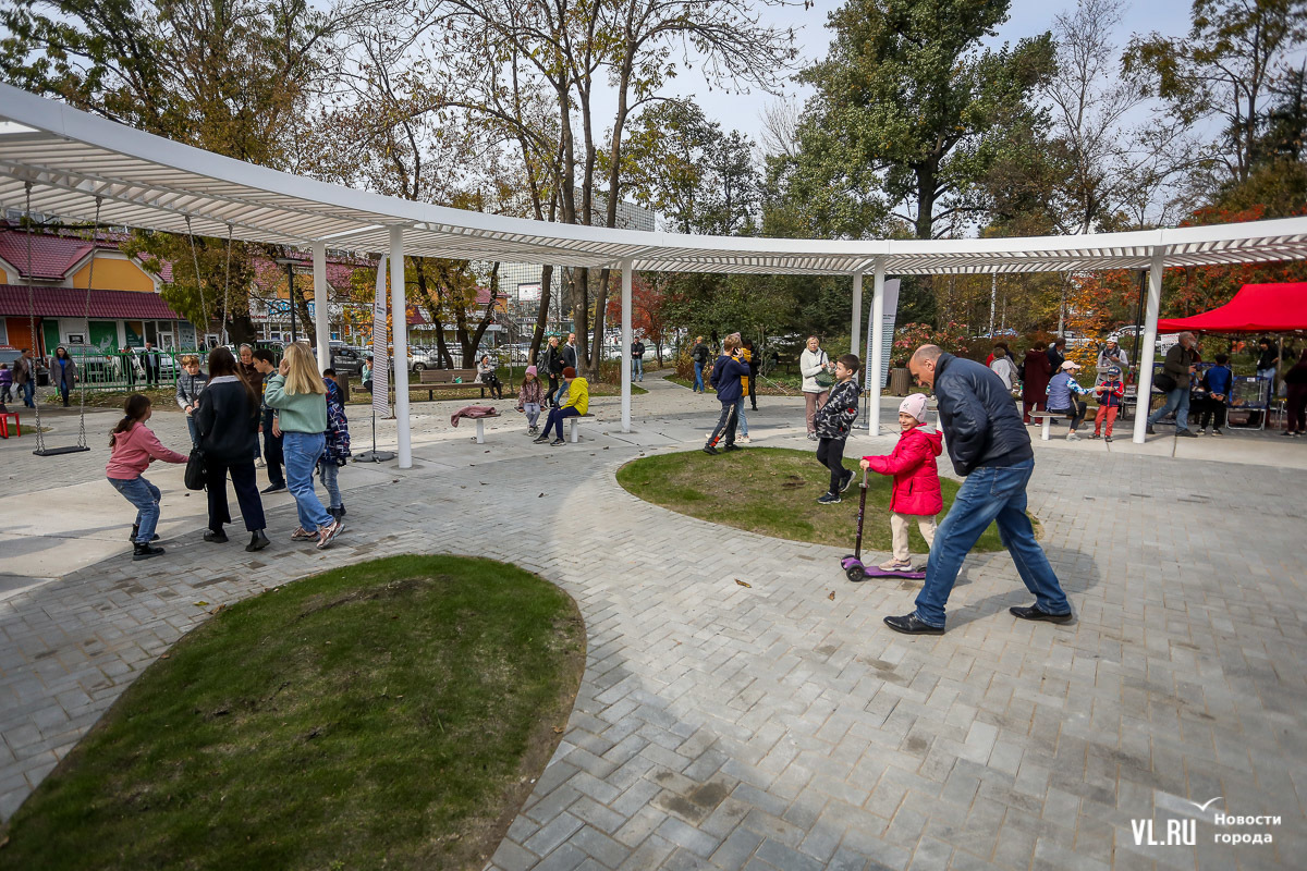 В воскресенье, 16 октября, во Владивостоке после реконструкции открыли сквер на Русской, 46 – горожанам он больше известен как «сквер с китёнком» из-за большой скульптуры морского млекопитающего, появившейся здесь в девяностых. Фигуру, за которой долгое время никто не ухаживал, во время ремонтных работ снесли. Теперь центральную часть сквера украшает высокая круговая пергола – белый навес, под которым разместили качели и места для отдыха.
