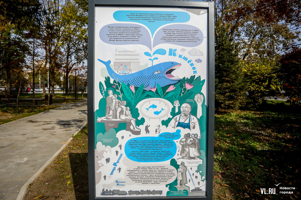 Интересно, что в обновлённом сквере ещё до его официального открытия произошёл акт вандализма – как утверждают в Дирекции общественных пространств Владивостока, некий гражданин из любви к исчезнувшей скульптуре испачкал информационный стенд, на котором как раз рассказывается история этого места и китёнка в частности. Вандала уже нашли по камерам видеонаблюдения. Если ситуация повторится, его могут привлечь за хулиганство.