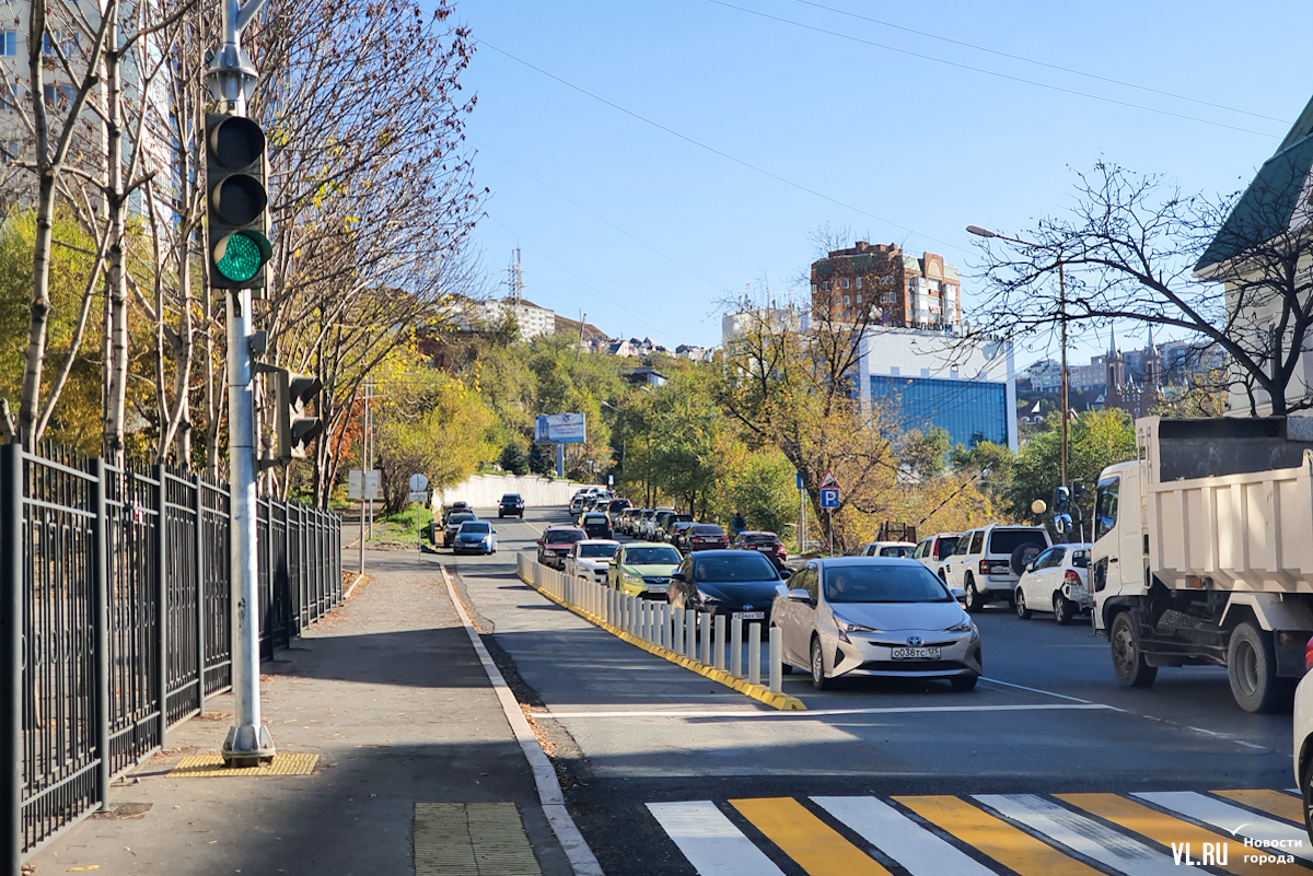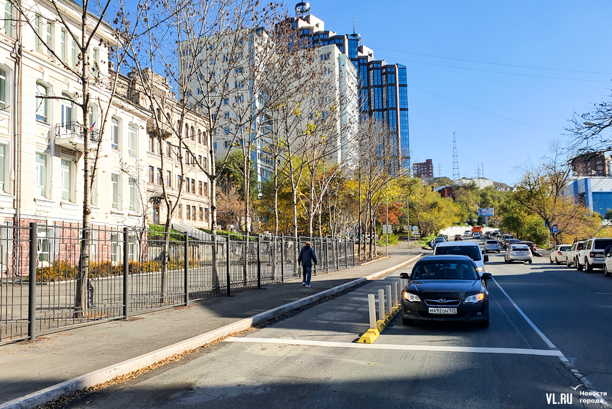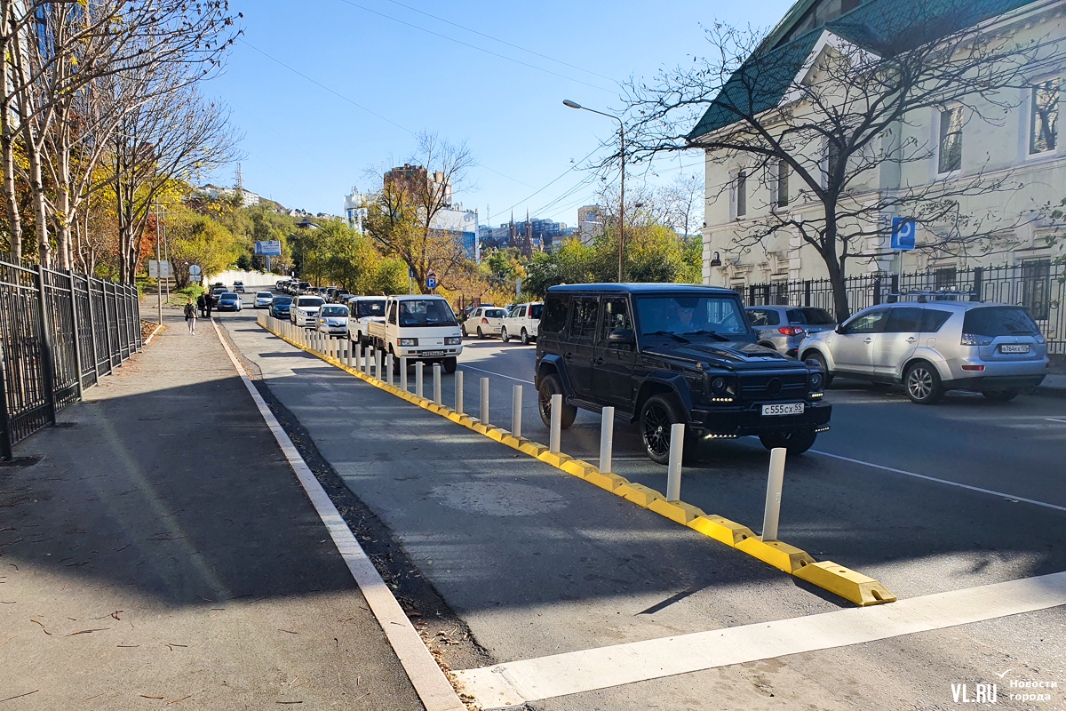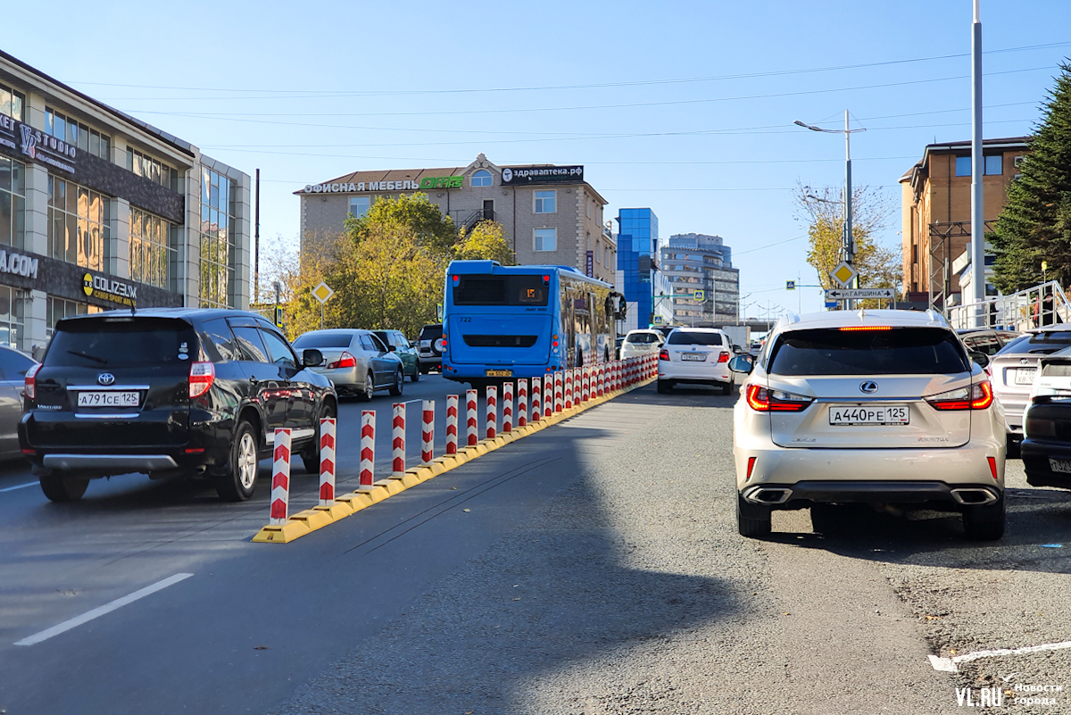 Обновление 16:15: В администрации Владивостока пояснили, что на улице Гоголя в районе ТЦ «Голубиная падь» выделенная полоса предназначена для удобного въезда на территорию ВВГУ (бывший ВГУЭС).