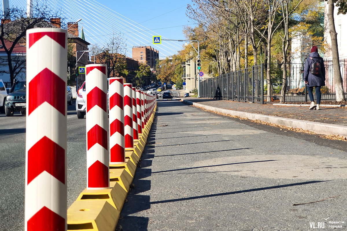 В понедельник, 17 октября, автолюбители Владивостока обнаружили делиниаторы, установленные сразу в нескольких частях города. У школы на Пушкинской, как и обещали ранее, появилась спецполоса Kiss&Ride – для быстрой высадки пассажиров. Как ни странно, территорию проезжей части аналогично огородили в районе ВВГУ – смысл данной разметки до конца не понятен редакции, но, по информации мэрии, она нужна для удобного въезда на территорию вуза. Делиниаторы ставят и в районе Инструментального завода – очевидно, чтобы сузить проезжую часть, ограничив возможность стихийной парковки.