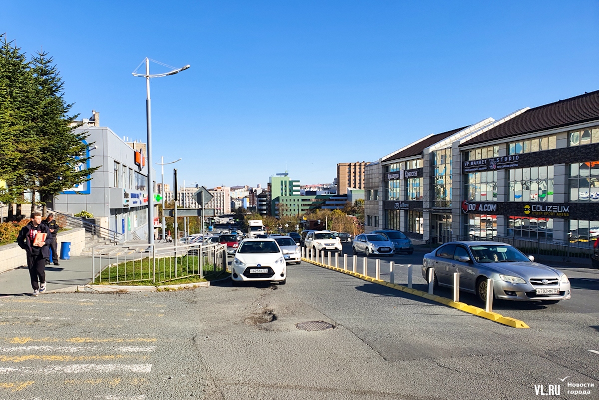 Ещё одна зона Kiss&Ride появилась во Владивостоке у входа в Зимний сад ВВГУ – по крайней мере, здесь поставили точно такие же делиниаторы. Правую полосу и парковку, примыкающую к ней, огородили искусственными бордюрами – от входа в Голубиную Падь до поворота к общежитиям университета. Для свободного движения автотранспорта осталось три полосы слева.