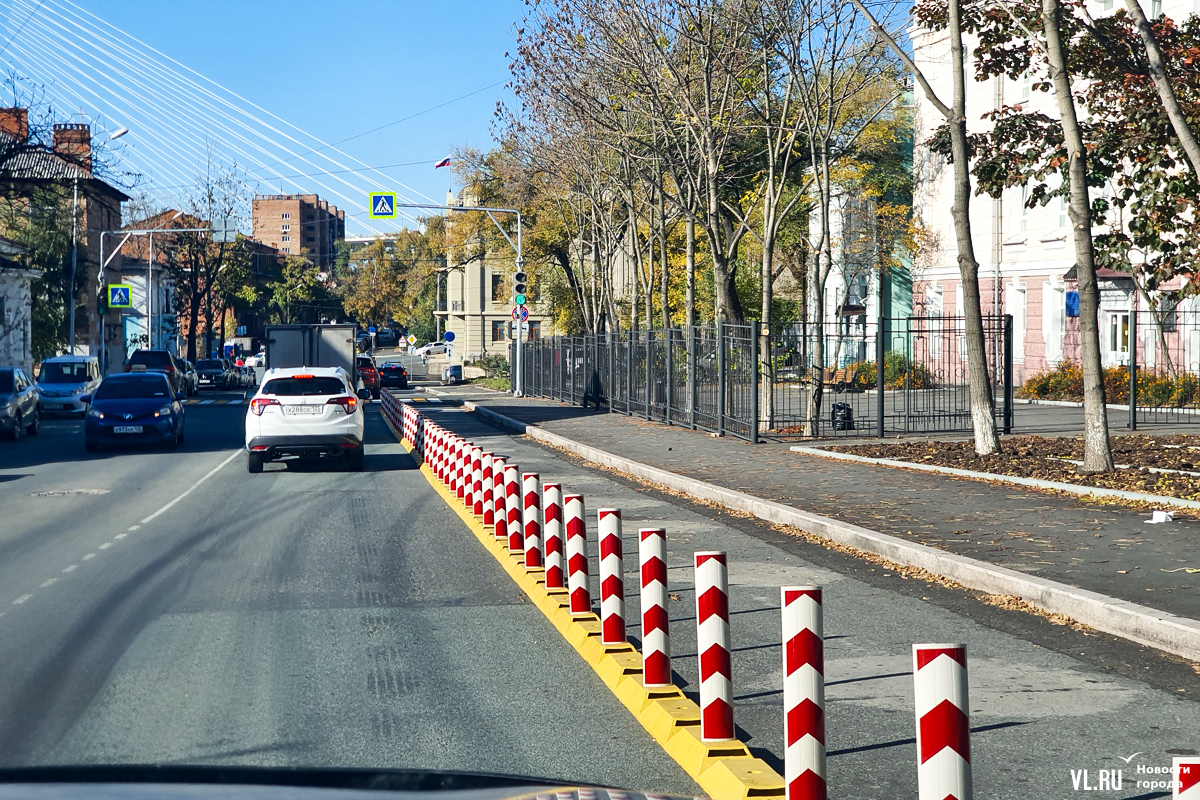 «Этот участок магистральной улицы Гоголя всегда достаточно загруженный, при этом движение замедляли припаркованные автомобили, а также водители, заезжавшие на территорию университета с двух, а то и с трёх полос сразу. Всё это создавало аварийную ситуацию. Сейчас заезд на территорию ВВГУ возможен только с крайней правой полосы, отделённой делиниаторами. Это поможет увеличить пропускную способность участка и упорядочить движение транспорта», – комментирует директор Центра организации дорожного движения Александр Гревцев.