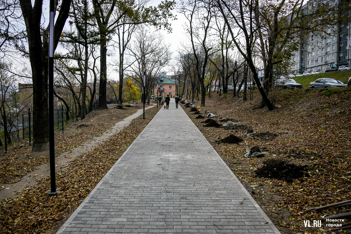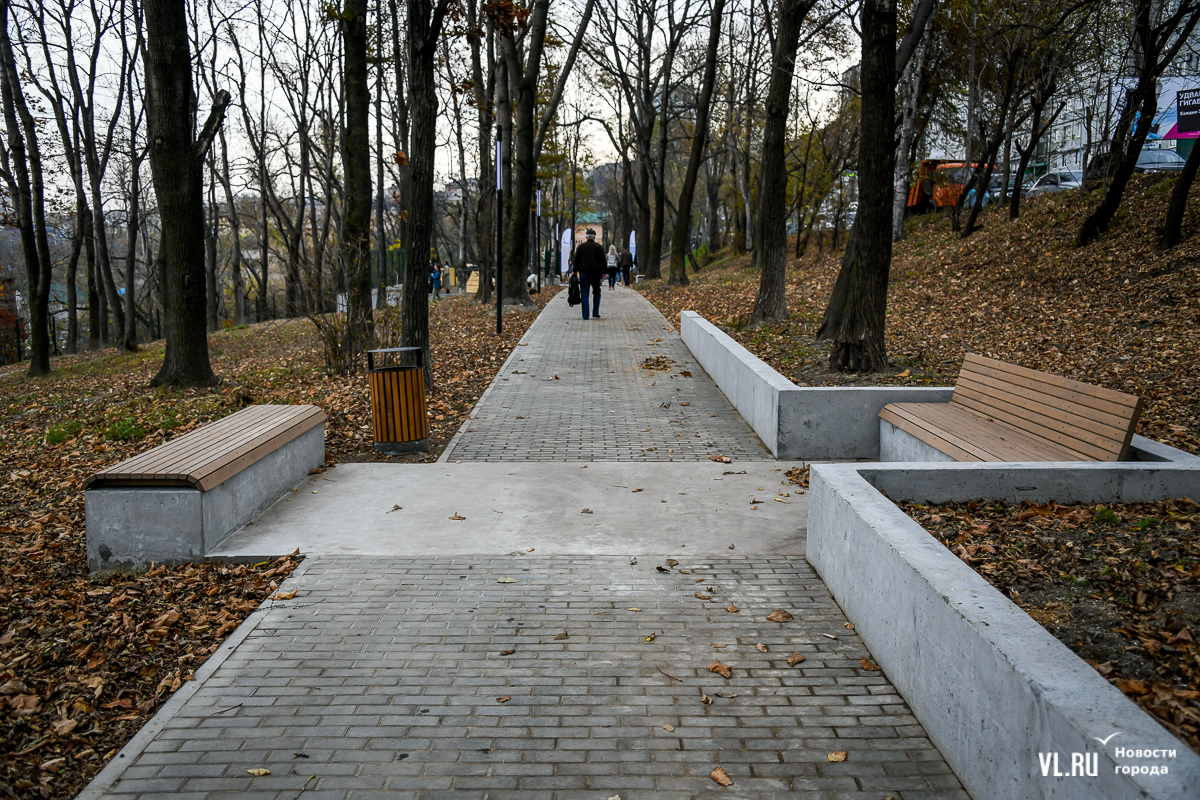 «Мы обновили зону променада, оснастив её камерами видеонаблюдения и освещением, обустроили площадку для выгула собак. Также интегрировали в пространство имеющийся памятник, создали вокруг него зону амфитеатра, куда можно прийти и полюбоваться видами на бухту Золотой Рог», – рассказал и. о. руководителя Дирекции общественных пространств Владивостока Артур Шибаров.