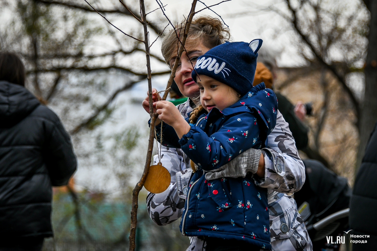 Также сегодня горожане внесли свой вклад в благоустройство сквера: высадили аллею вдоль основного променада. К каждому дереву местные жители привязали памятные таблички, на которых указали свои имена.