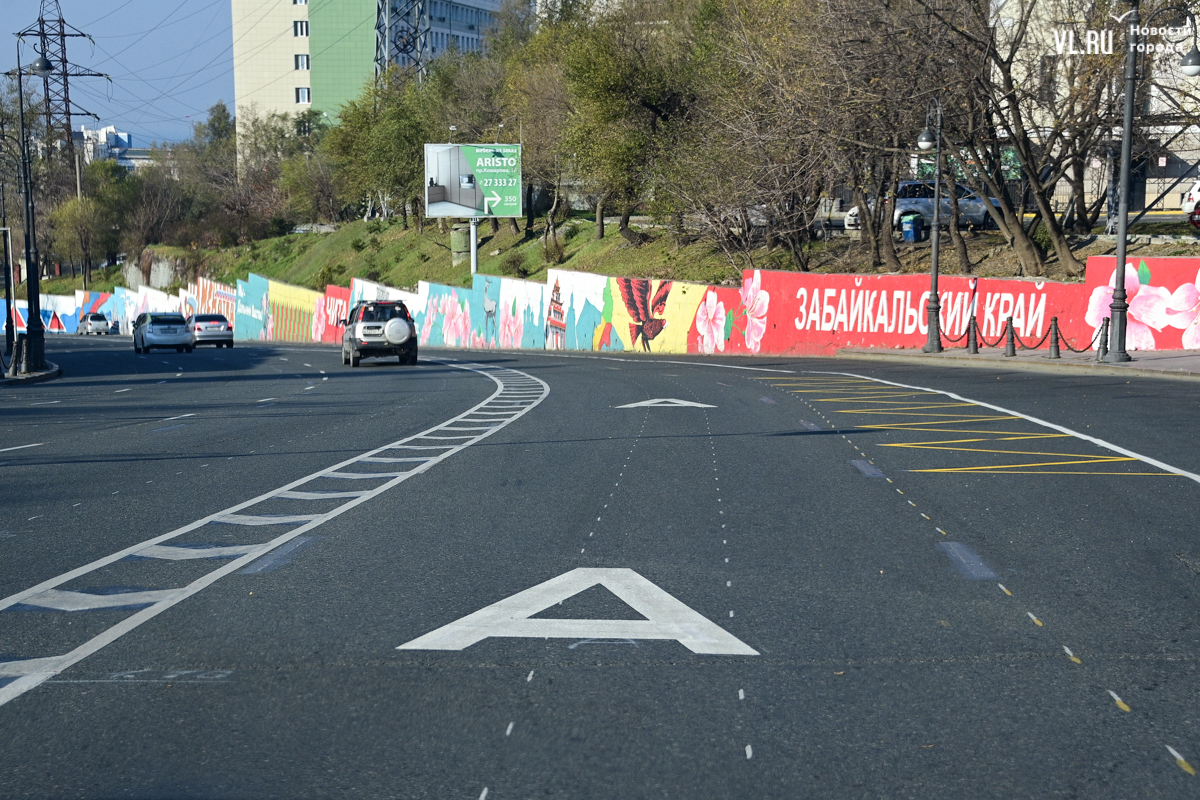На перекрёстке Светланской и Океанского проспекта, напротив центральной площади, появилась разметка «Уступи дорогу». Теперь автомобилисты, которые едут со стороны ТЦ «Центральный», должны уступать потоку машин слева – тем, кто едет со стороны «белого дома».