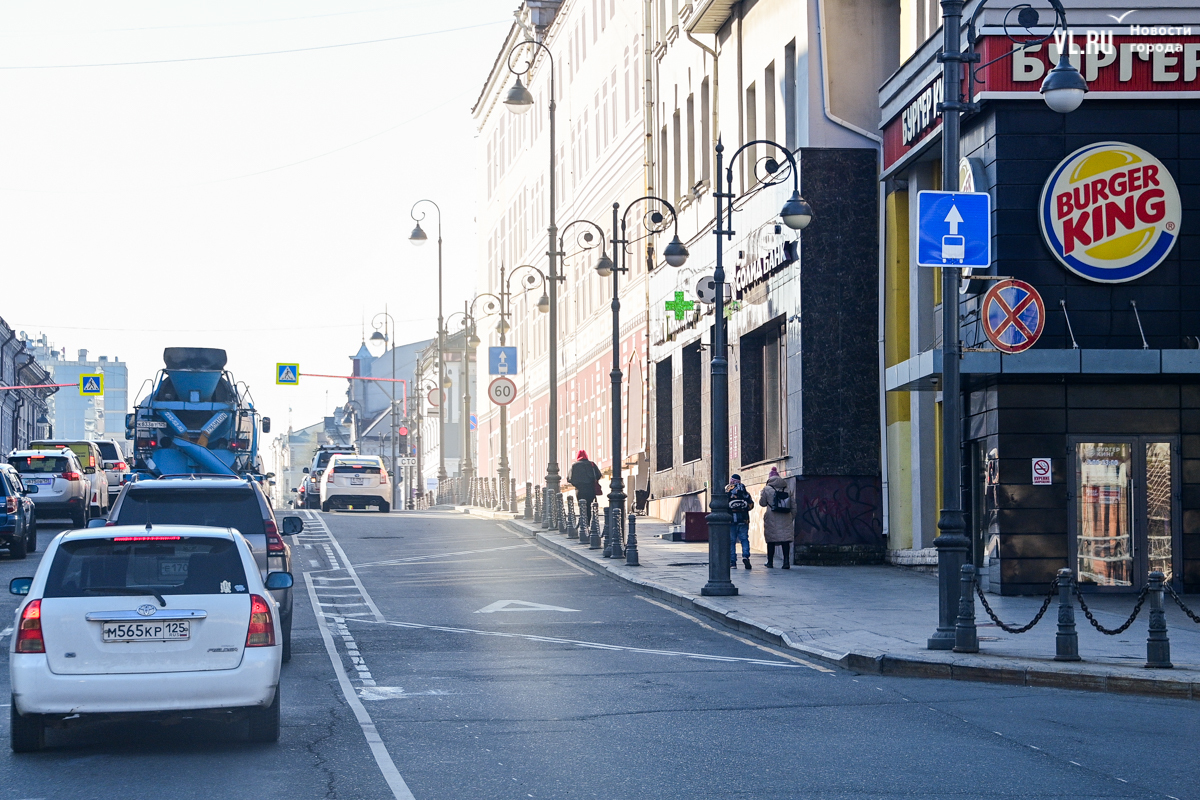Оставлять машины возле кофейни на Океанском проспекте, 30 нельзя. Знак, разрешающий парковку, убрали. Теперь здесь – действующая автобусная полоса.