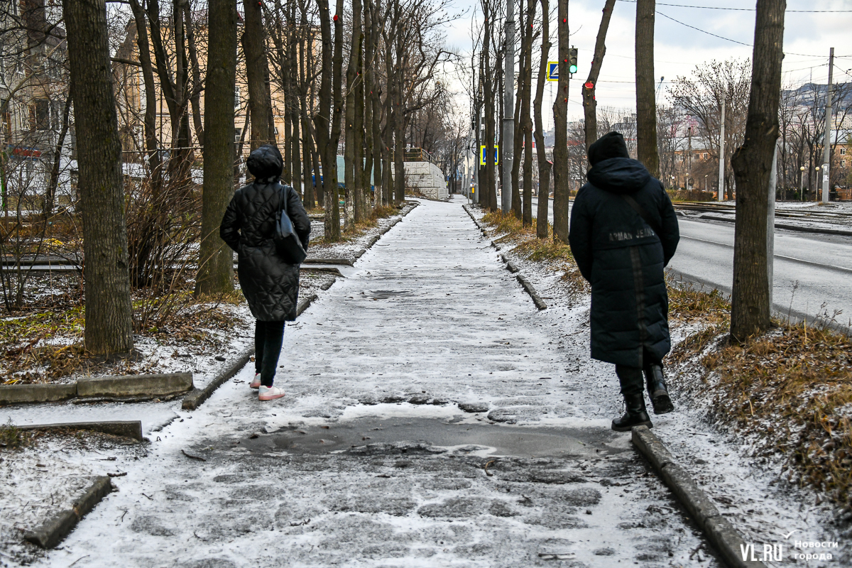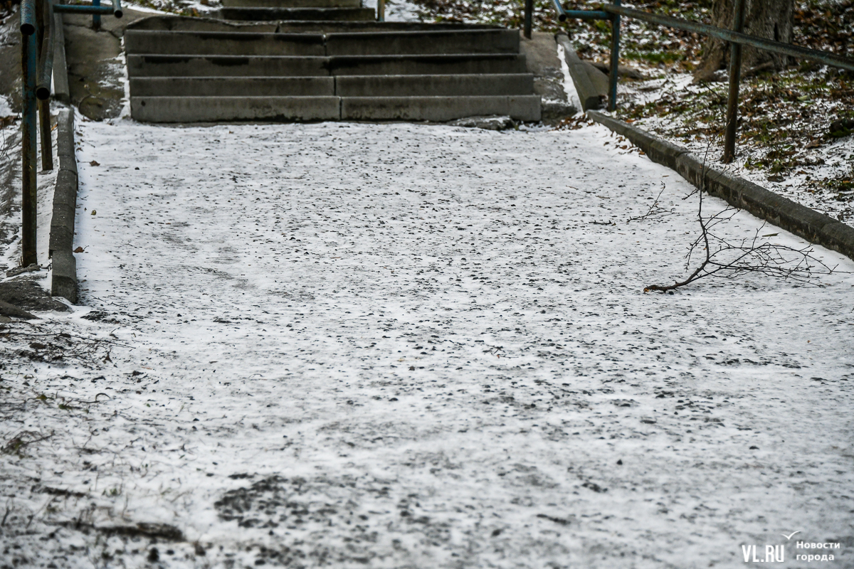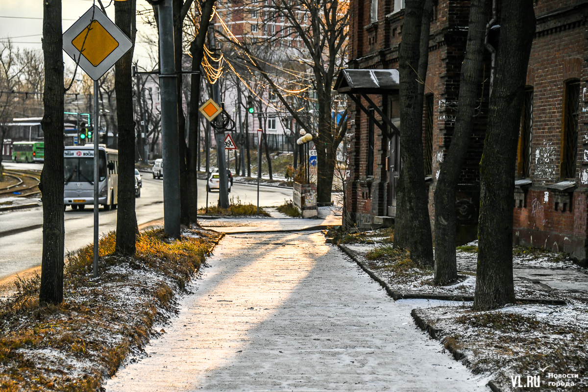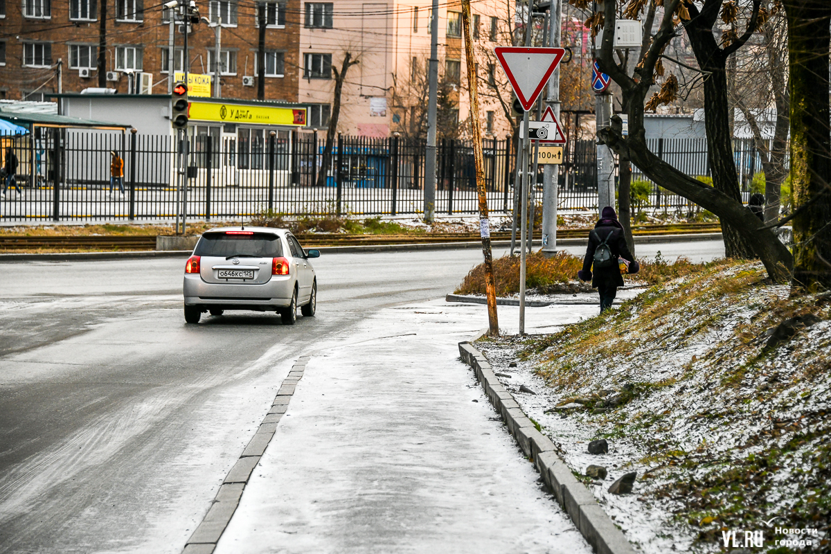 Обледеневшие спуски и массовая авария в микрорайоне Зелёный Угол. Так встретил Владивосток утро после визита предзимнего циклона. При этом корреспондент Новостей VL.ru убедился, что проехать по основным магистралям города можно довольно комфортно, дороги почищены. Однако автомобилисты жаловались на гололедицу в других частях дальневосточной столицы: асфальт в районах Ватутина, Днепровской и у ЖК «Зелёный бульвар» был покрыт льдом.