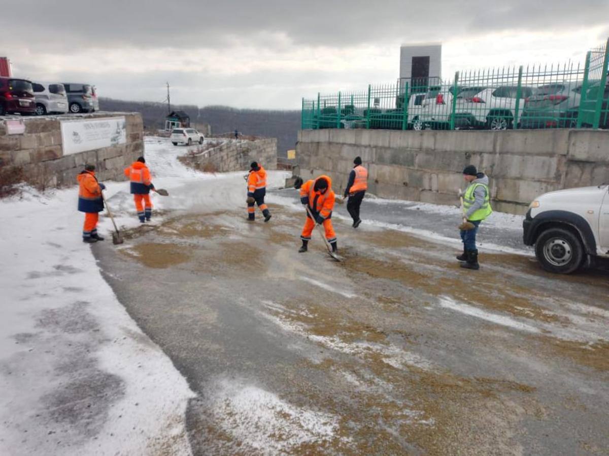 Администрация Владивостока сообщает, что дорожные службы минувшей ночью обработали дороги жидким реагентом и песко-соляной смесью. Всего была выведена 161 единица техники: пескоразбрасыватели, трактора-щётки, машины для нанесения жидкого реагента.