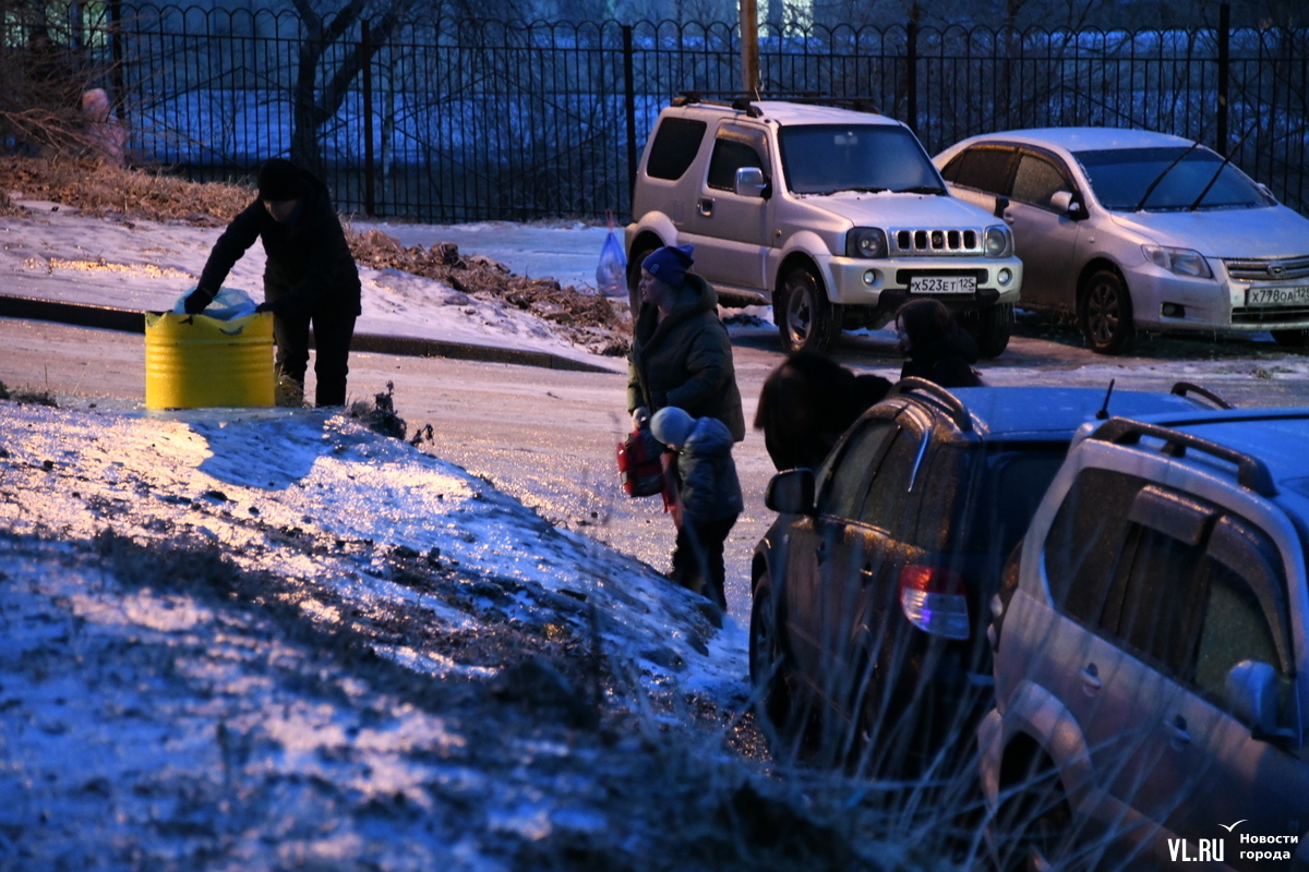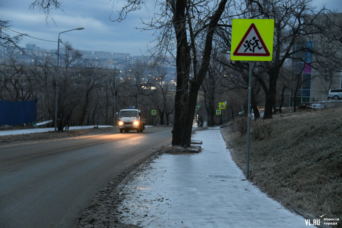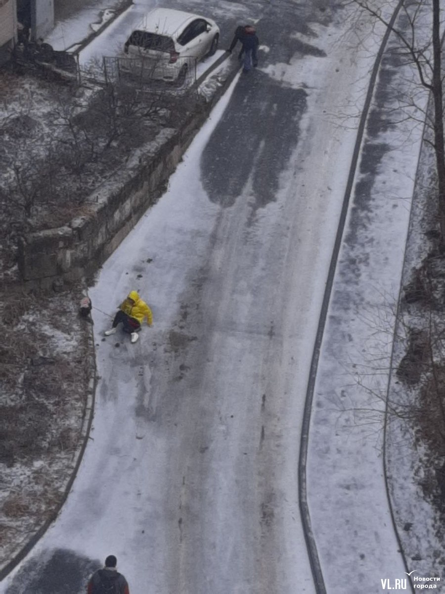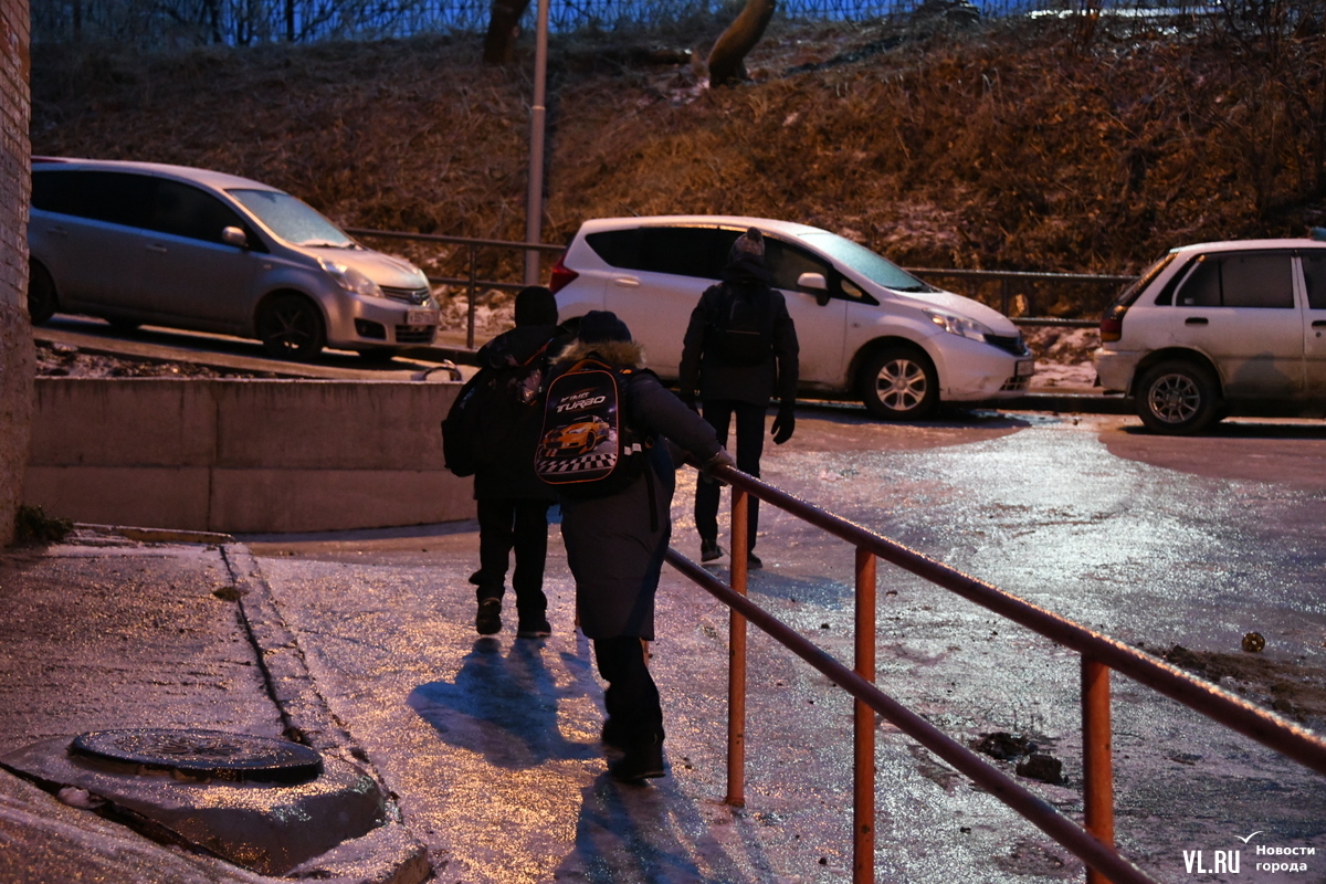 Тем временем граждане советуют друг другу надевать сегодня только шипованную обувь или использовать специальные ледоступы. Приобрести их можно на сайте FarPost.ru.