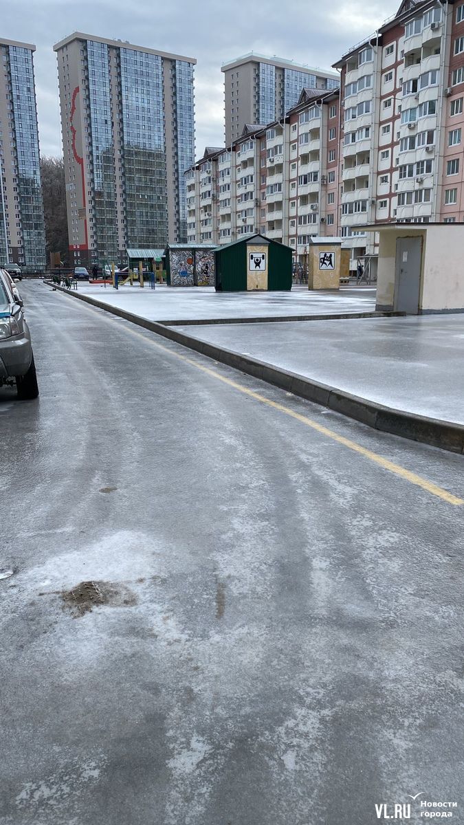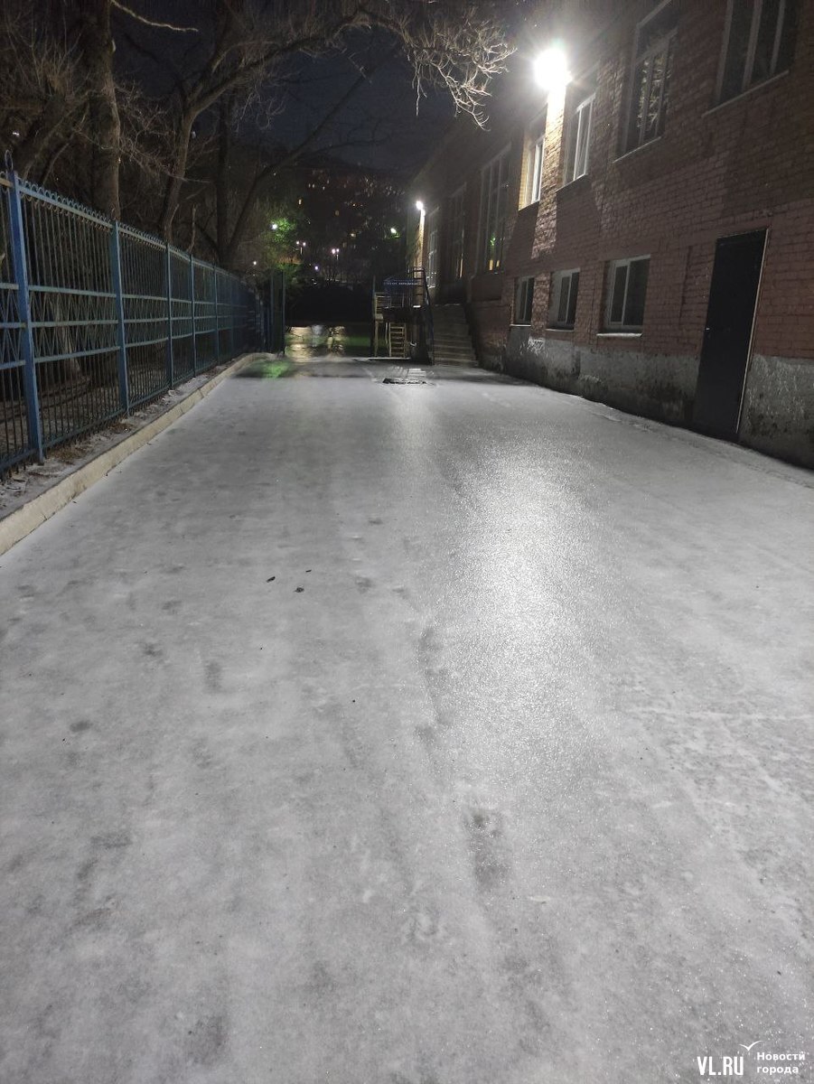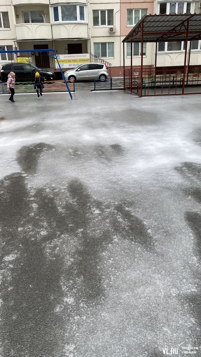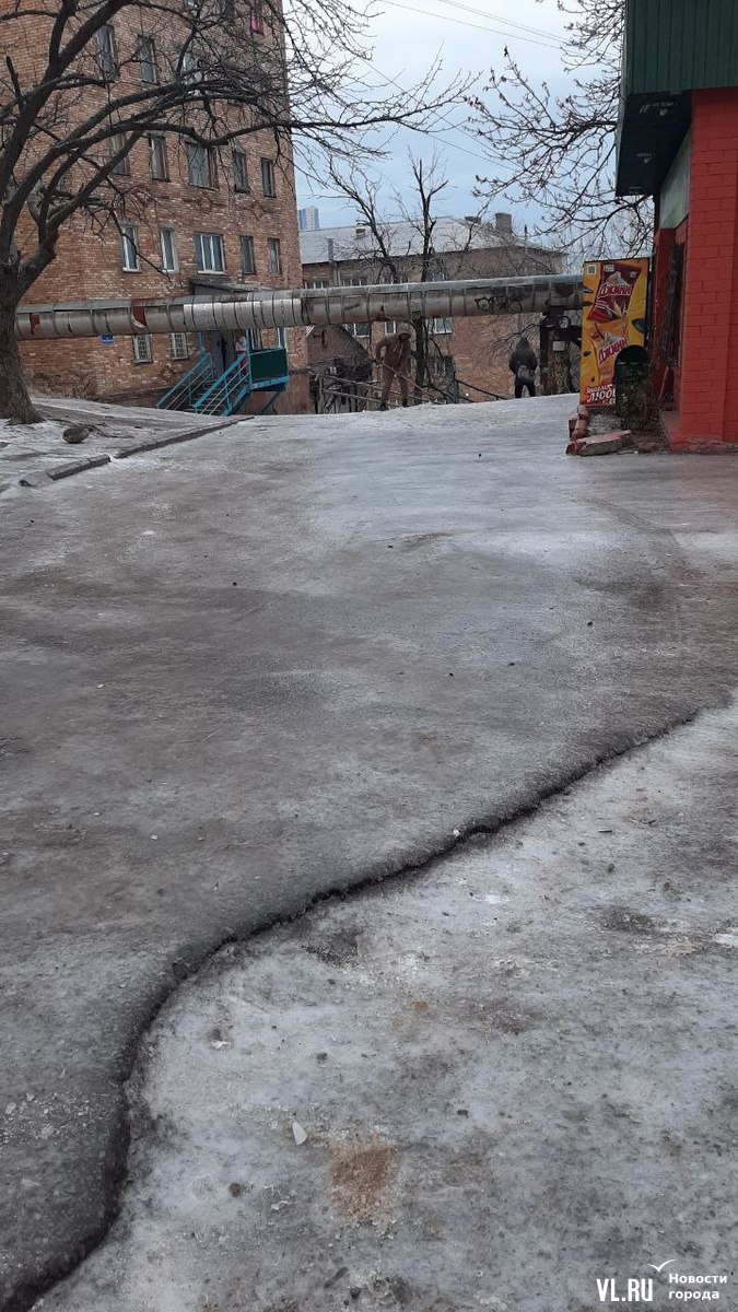 Обновление 11:50: Горожане отозвались на просьбу сайта Новости VL.ru и активно жалуются на свои управляющие компании. Жители Толстого, 42 утром не заметили дворника, при этом крыльцо во льду, а единственный спуск от дома для пешеходов и автомобилей - ледяная горка. УК «Эгершельд».