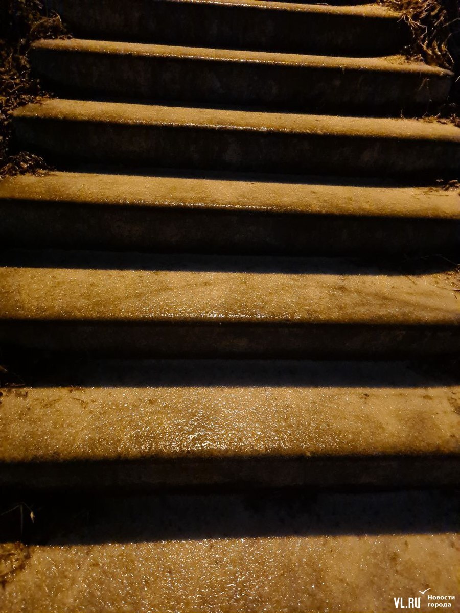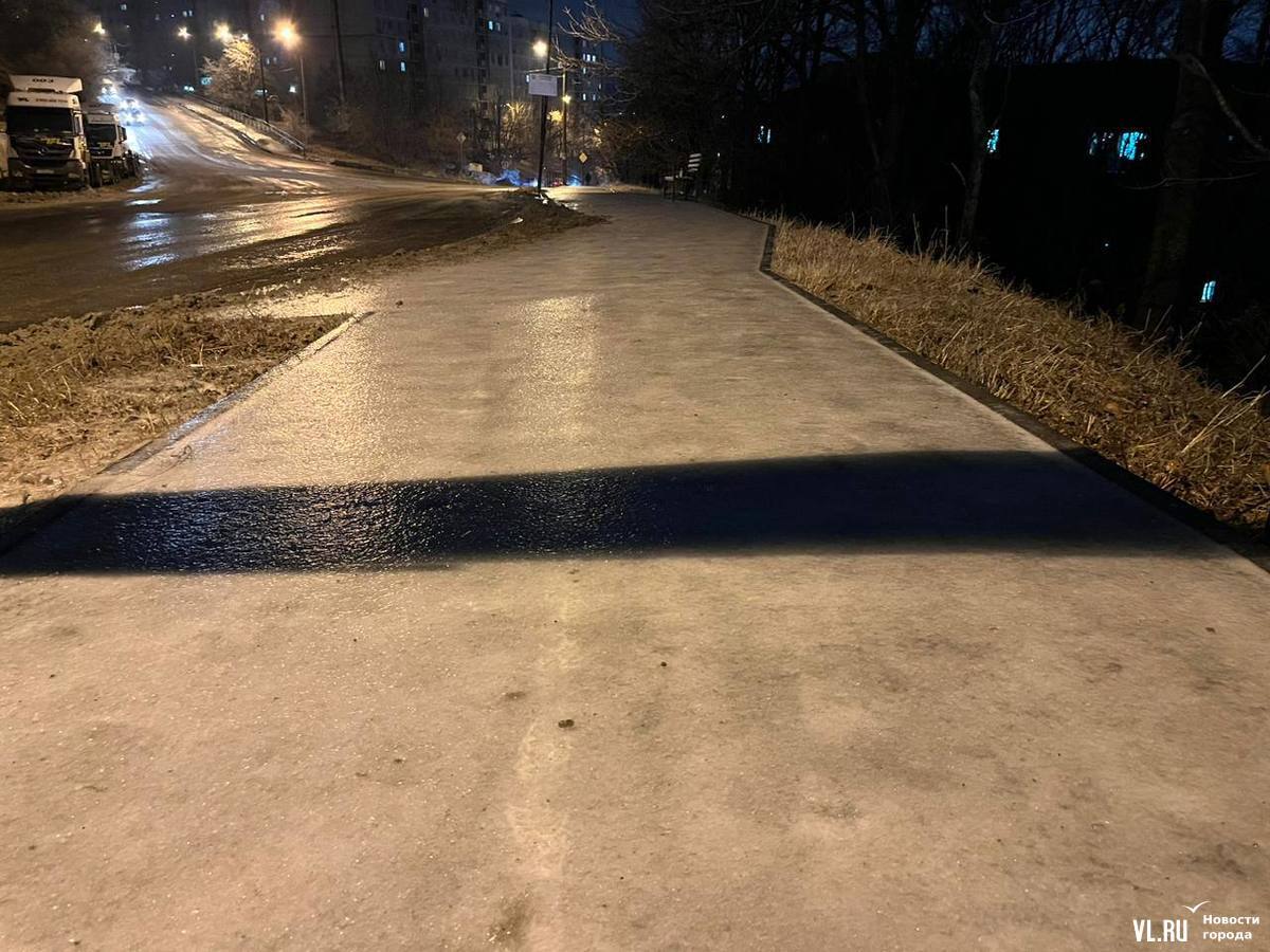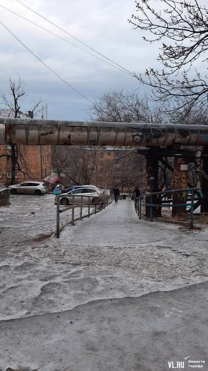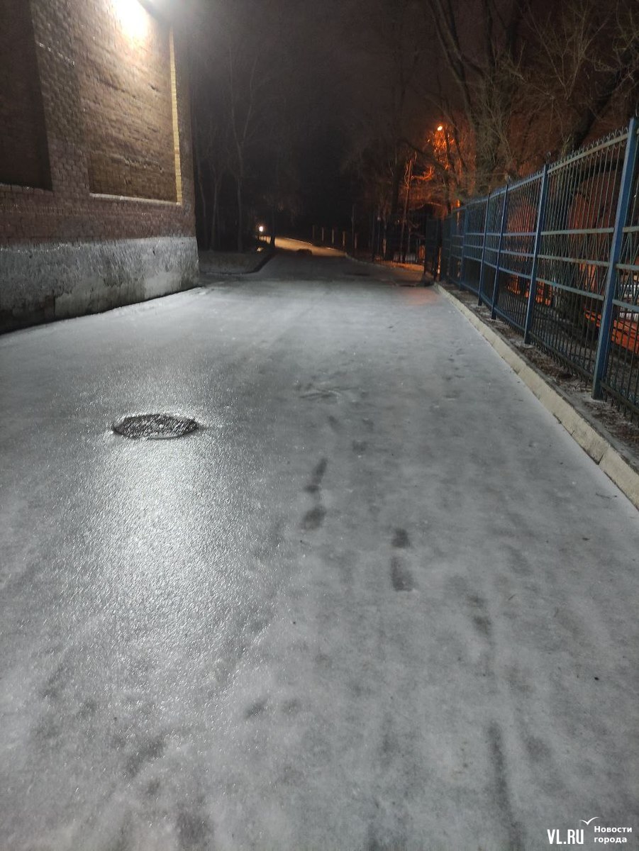 Обновление 11:50: Горожане отозвались на просьбу сайта Новости VL.ru и активно жалуются на свои управляющие компании. Жители Толстого, 42 утром не заметили дворника, при этом крыльцо во льду, а единственный спуск от дома для пешеходов и автомобилей - ледяная горка. УК «Эгершельд».