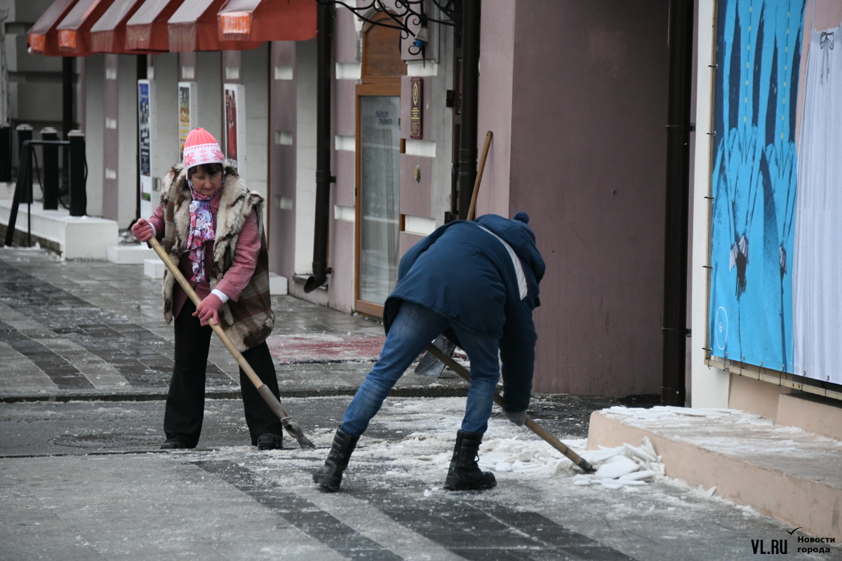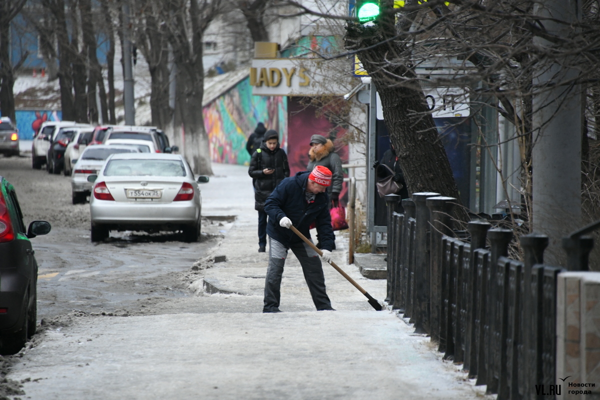 Как сообщили в мэрии, с раннего утра во Владивостоке очисткой тротуаров ото льда занято 238 дворников. Со вчерашнего дня на обработку дорог и тротуаров было потрачено 775 тонн песко-соляной смеси, 132 тонны жидких реагентов и 98 тонн бионорда. По словам директора МБУ «Содержание городских территорий» Николая Насонова, это в 3,5 раза больше, чем обычно при снегопадах. «Это действительно был ледяной дождь, потому что температура была -5 °C и шли осадки в виде дождя, – сказал Насонов. – Ситуация осложнялась тем, что песко-соляная смесь реагировала с поверхностью и тут же покрывалась ледяной коркой. За ночь спецтехника обработала центральные маршруты и ответвления около 15 раз».