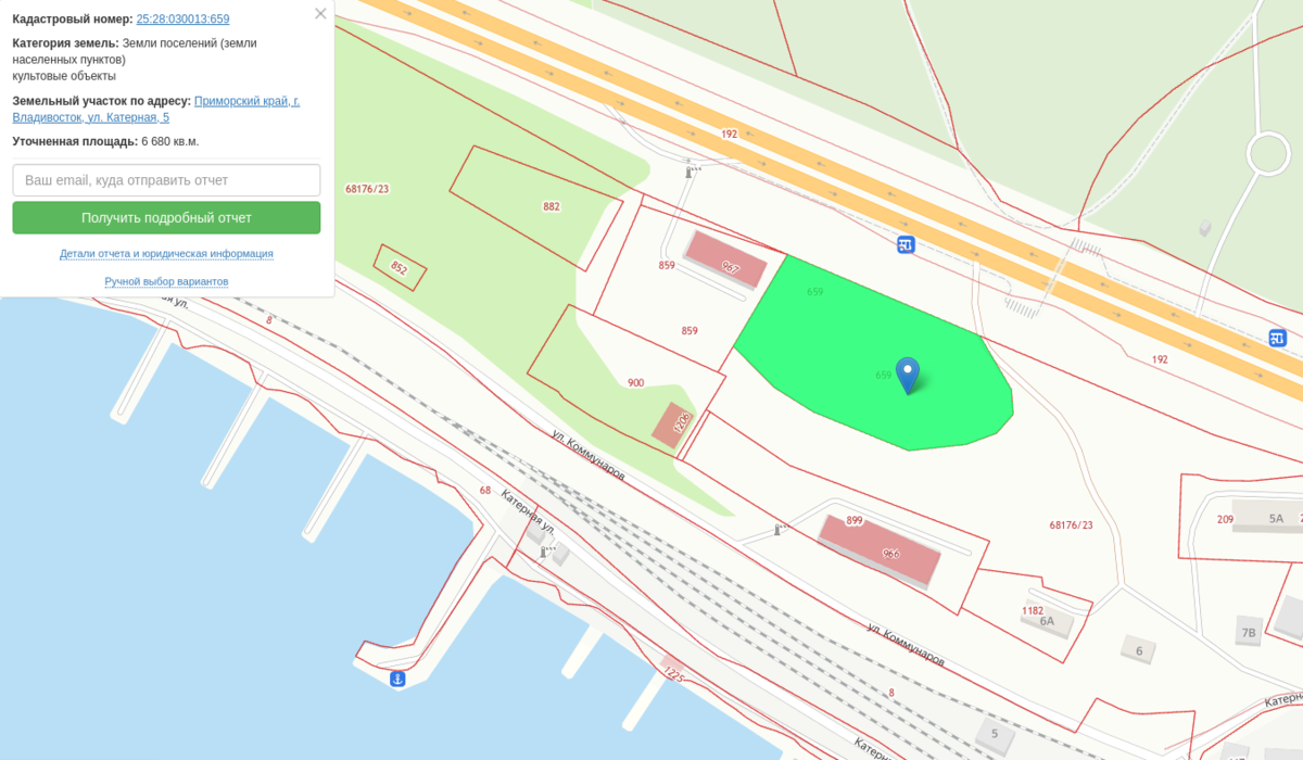 Сейчас, по данным кадастровой карты, участок 25:28:030013:659 – это 6680 кв. м пустующей земли для культовых объектов.