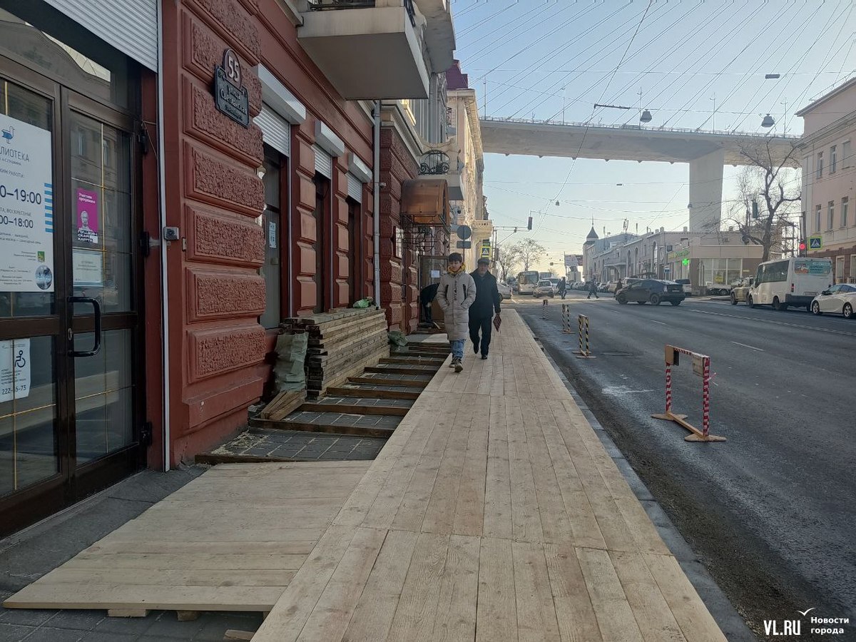 В среду, 7 декабря, рабочие начали собирать деревянное защитное ограждение около входа в Тихоокеанский флотский военный суд и библиотеку «БУК» (Светланская, 55). Сделано это для защиты пешеходов от падающих с карниза кусков штукатурного слоя. Кровлю и фасад планируется отремонтировать в 2023 году.