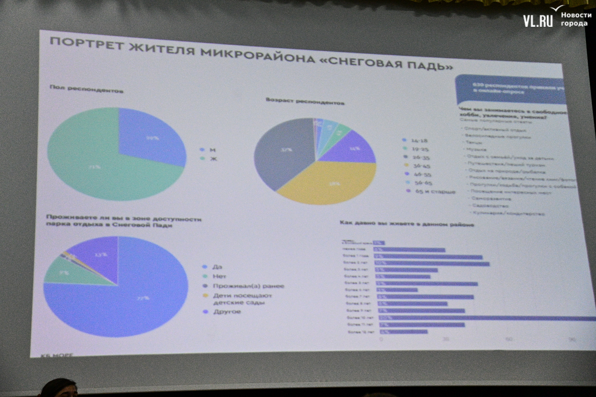 Далее встреча продолжилась представлением проекта будущего благоустройства, деталями которого поделилась главный архитектор концептуального бюро «Море» Виктория Саляхова. Однако пока она рассказывала о видовом разнообразии животных и растений, которыми богата сопка, зал разразился возмущёнными криками. «Зачем нам эта информация про птиц и белок? Мы на уроке биологии? Когда подъездную дорогу сделаете?» – негодовали местные жители.