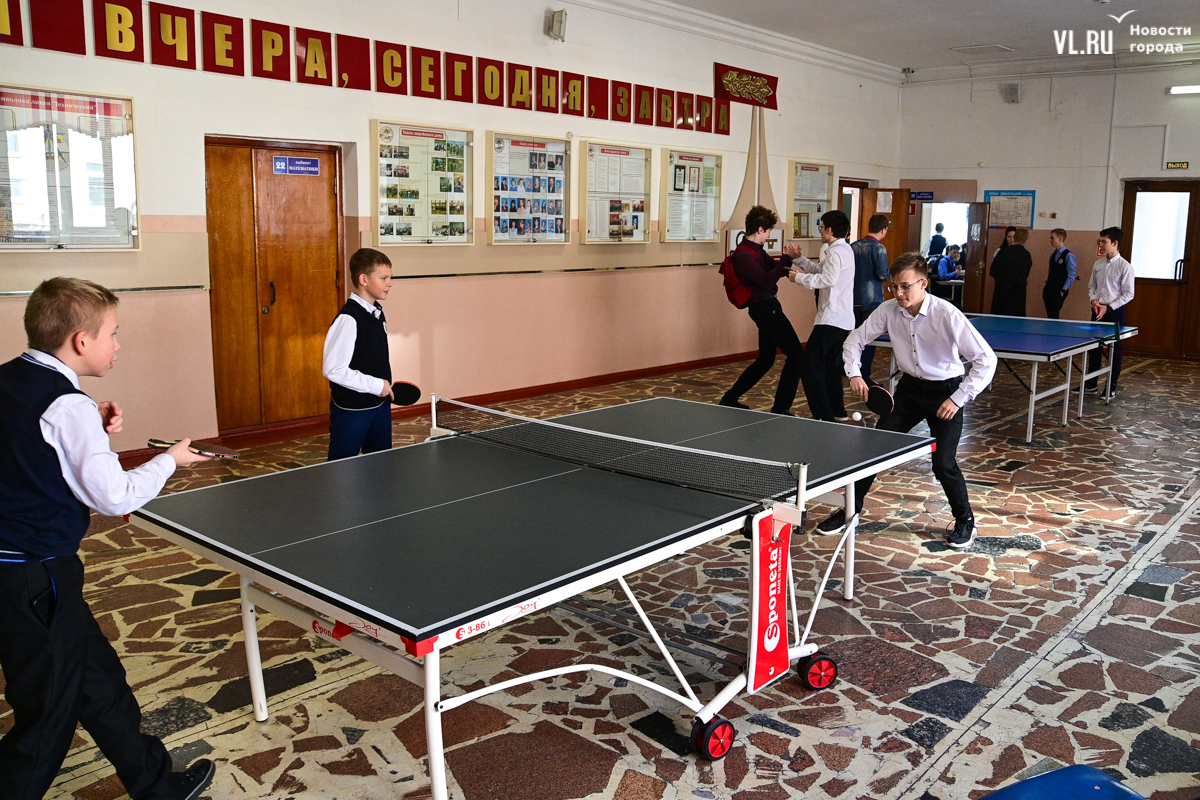 Расслабиться между сложными уроками помогает спорт. На втором и третьем этаже ребята на переменах играют в настольный теннис и аэрохоккей.