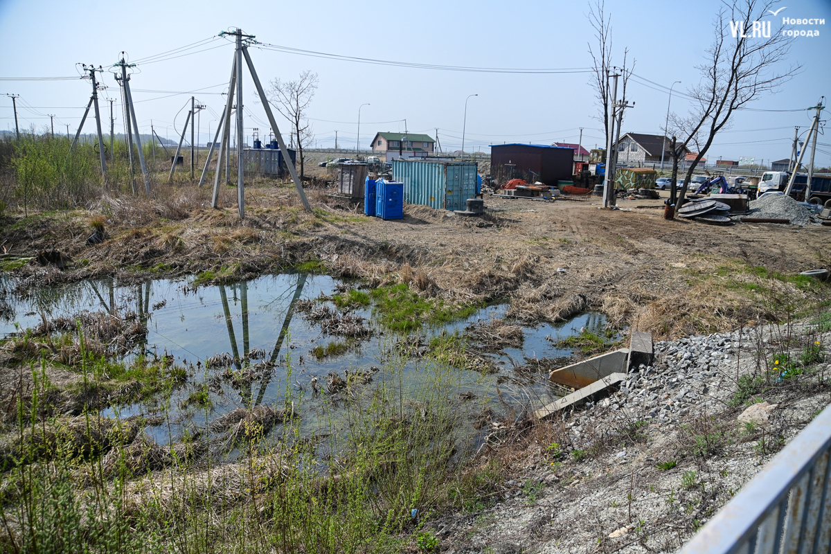 Вода лилась из колодцев возле посёлка и в нём самом, всё это по оврагам стекало в протоку. Между территорией ТОР и СНТ находится канализационная насосная станция (КНС). Рядом с ней заболоченное поле, посреди которого торчат несколько колодцев. Следы подтопления видны вокруг них в радиусе примерно 20 метров. Сейчас испорченная вода почти вся ушла, но вонь осталась и запах рыбы – тоже. Человек, который, видимо, обслуживает насосную, сказал приехавшим журналистам, что она относится к сетям водоканала и что подобное происходит «периодически». Выглядит КНС непрезентабельно – больше похожа на какую-нибудь авторазборку.