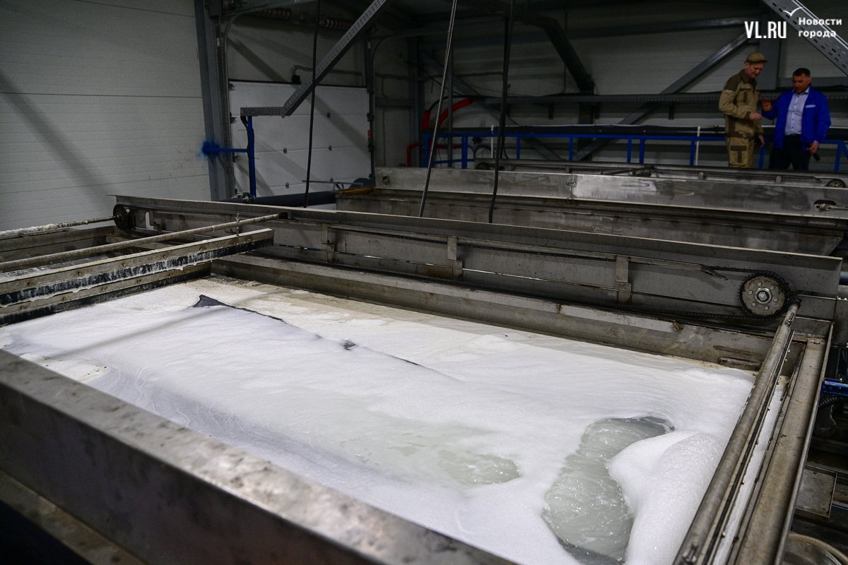 «У нас предприятие построено по проекту, прошедшему все экспертизы, с соблюдением всех норм, – сообщил главный инженер Валерий Чуприн. – Что касается стоков – у нас водоотведение 1400 кубометров. Наши локальные очистные очищают используемую в производстве воду до нормативов, установленных в Приморье для сброса в городскую канализацию. Мы сбрасываем стоки не на рельеф, не в речки, а именно в канализацию. Вода собирается в специальном узле физико-химической очистки. Никаких других веток нет, и сделать их невозможно, потому что трубы заложены ниже глубины промерзания грунта, то есть на два метра. Резервуары также заглублены в землю. После физико-химической очистки мы собираем все отходы со стоков в контейнеры и передаём на биологическую очистку, их у нас очень мало. Из очистных сооружений вода, соответствующая требованиям водоканала, по напорной магистрали уходит в точку присоединения к сетям водоотведения, то есть в городскую канализацию. Присоединение у нас рядом с территорией. На этом наша ответственность заканчивается. Аварийные переливы проектом исключены, это технически невозможно».