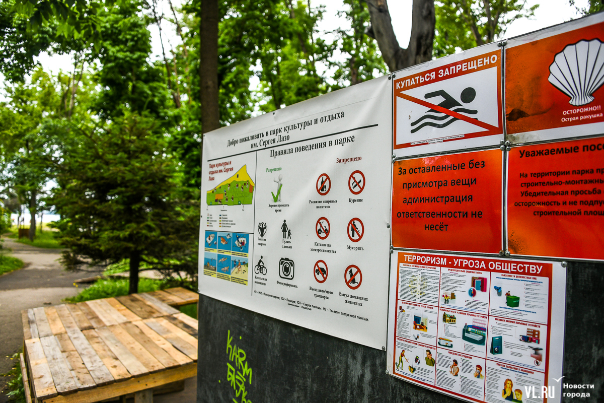 Корреспондент Новостей VL.ru сам объехал городские пляжи в поисках официальных запретов: «щиты и аншлаги» нашлись на Аяксе, на Канале, в парке Лазо, на пляже у Novik Country Club, в районе Токаревского маяка, на мысе Кунгасном, на Змеинке и Второй Речке. Если следовать букве закона до последней запятой, то оштрафовать за купание в границах Владивостока вас могут только здесь. Но кто это будет делать?