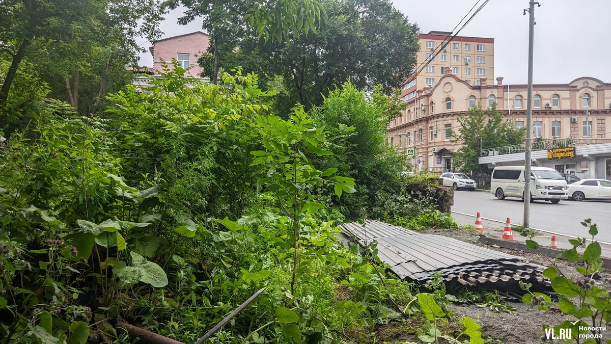 Заросли, которые скрывал забор, находятся на трёх участках сразу. Один 25:28:010024:120 – в пользовании у ООО «Стрелец-95», второй 25:28:010024:1350 – под домом № 177, а на третий без кадастрового номера собственность не разграничена. По нему в распоряжении редакции есть ответ администрации Владивостока.
