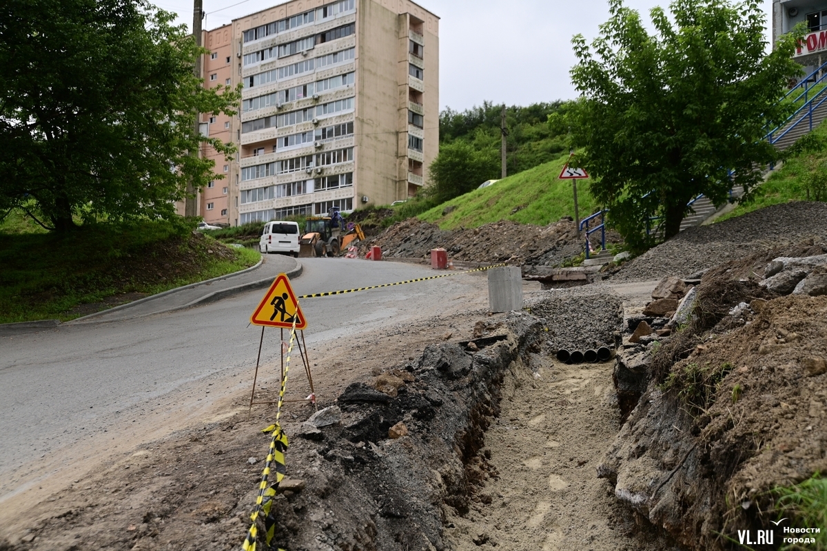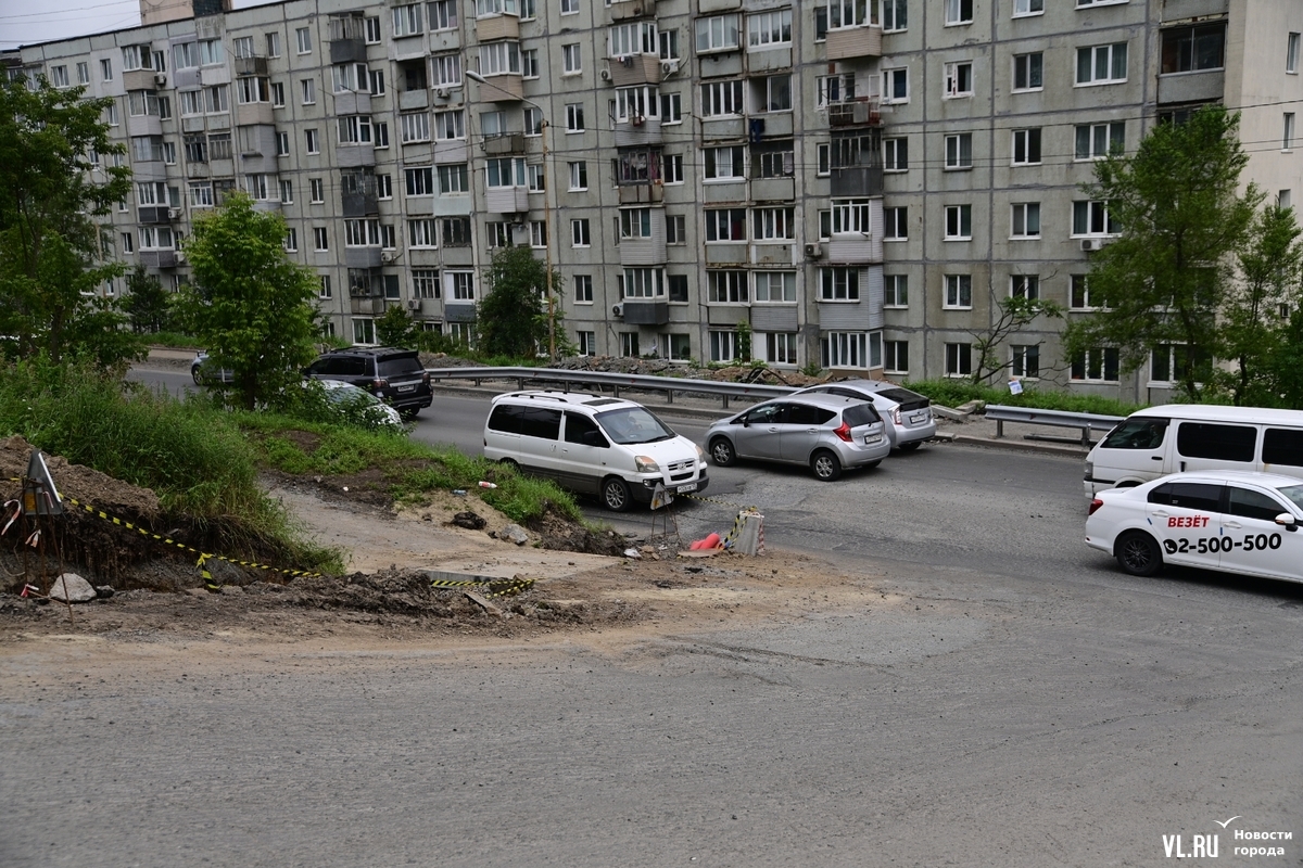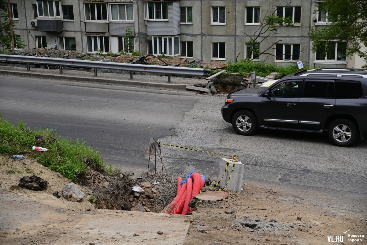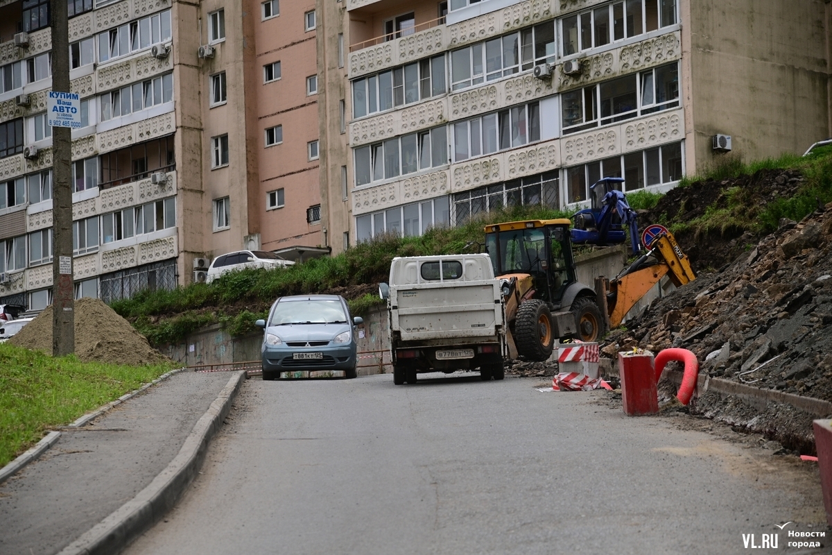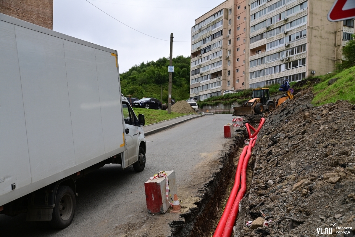 С конца июня по улице Котельникова во Владивостоке прокладывают электрокабель на стройку нового ЖК. Для этого здесь на время уничтожили несколько сотен метров нового тротуара, а теперь раскопали траншеи вдоль подъёма в сторону Красного Знамени, тоже отремонтированного в прошлом году. Машины едут по узкой дороге вдоль обрыва, объезжая бетонные блоки и катушки с кабелем. А в месте, где траншея пересекла Котельникова, осталась глубокая яма, которая уже несколько дней собирает пробки между 3-й Рабочей и Баляева.