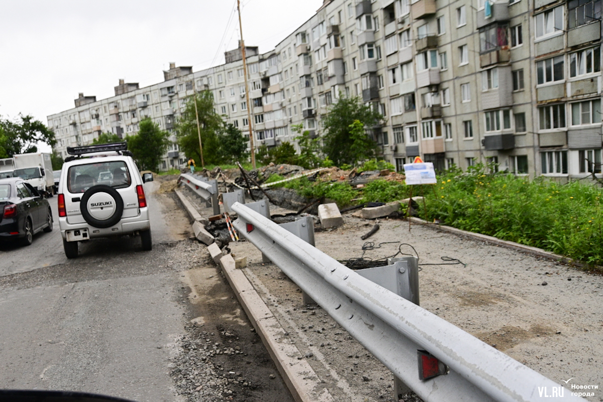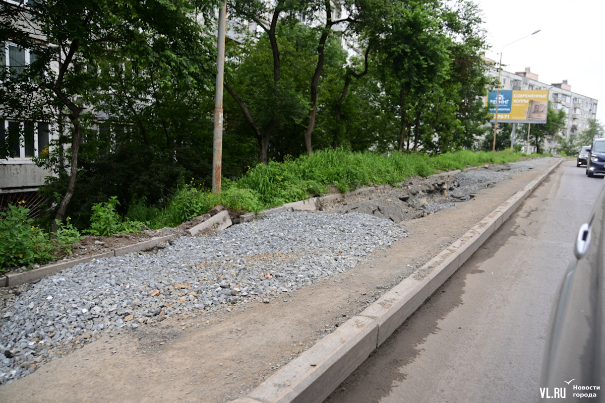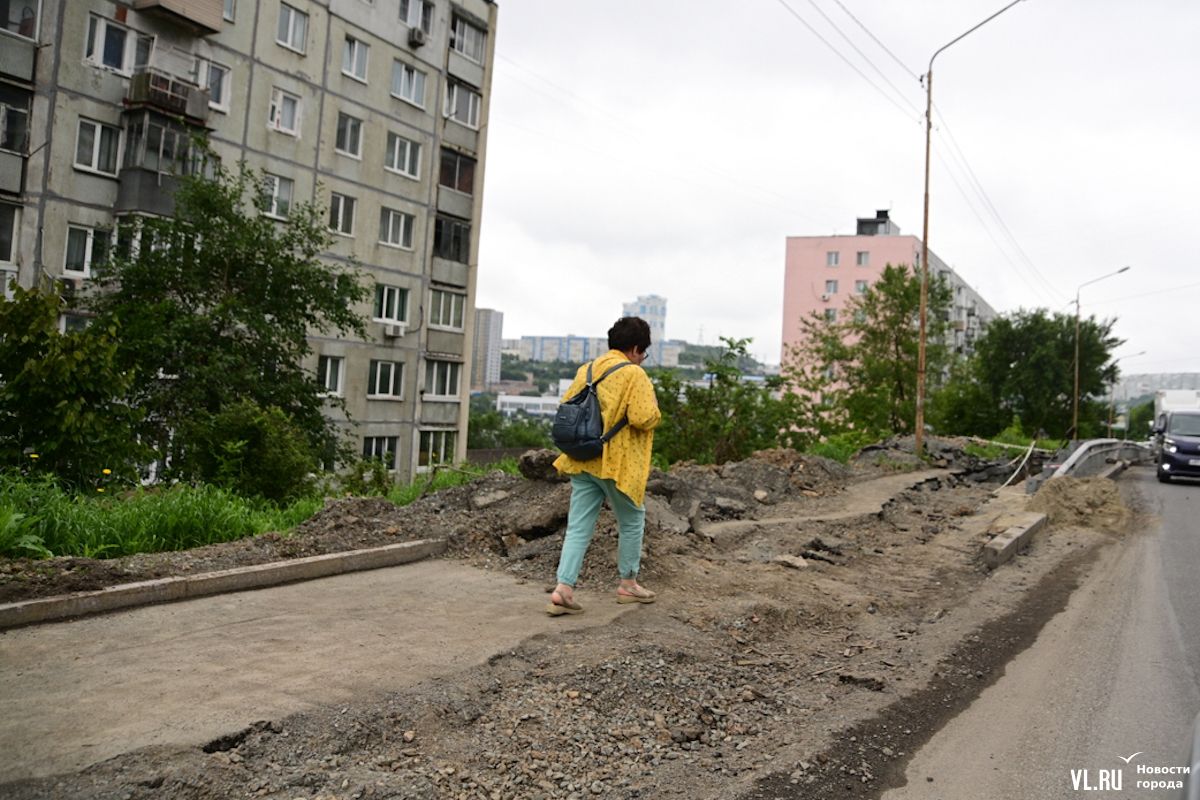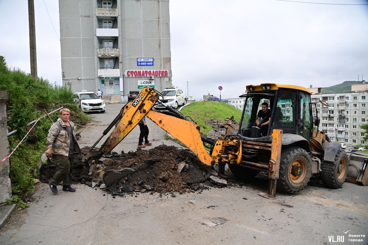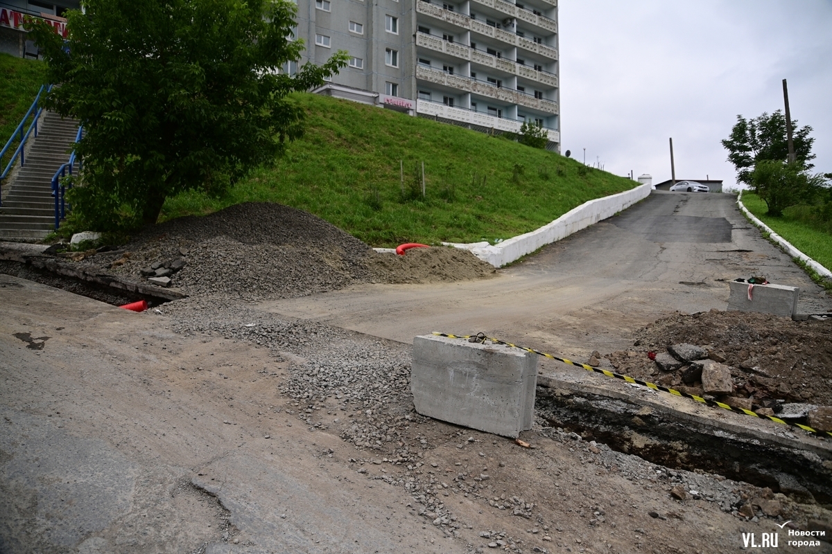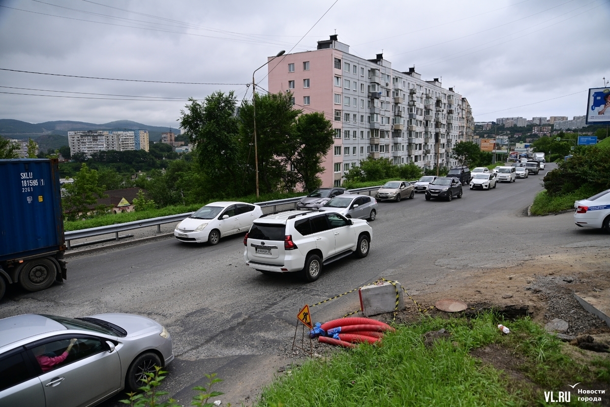С конца июня по улице Котельникова во Владивостоке прокладывают электрокабель на стройку нового ЖК. Для этого здесь на время уничтожили несколько сотен метров нового тротуара, а теперь раскопали траншеи вдоль подъёма в сторону Красного Знамени, тоже отремонтированного в прошлом году. Машины едут по узкой дороге вдоль обрыва, объезжая бетонные блоки и катушки с кабелем. А в месте, где траншея пересекла Котельникова, осталась глубокая яма, которая уже несколько дней собирает пробки между 3-й Рабочей и Баляева.