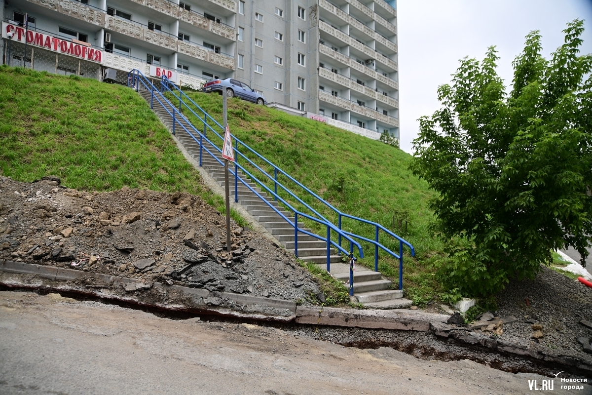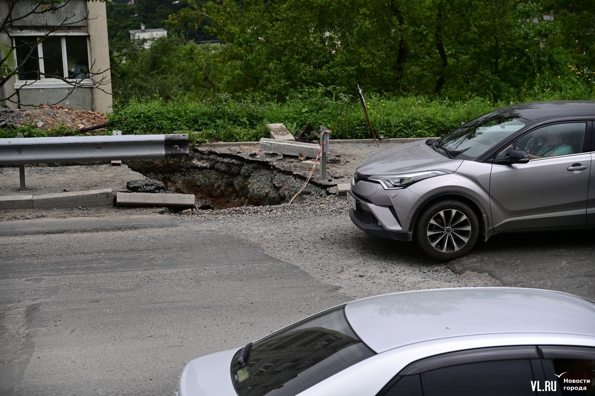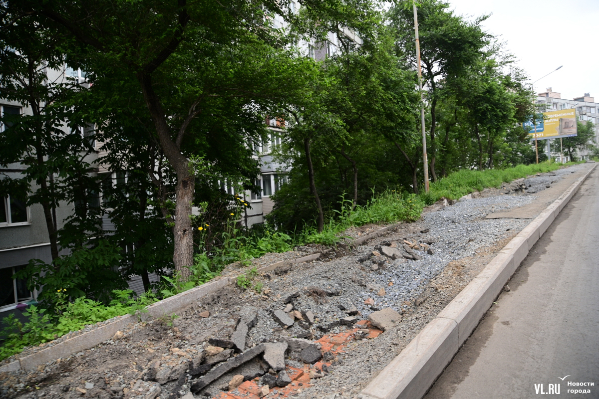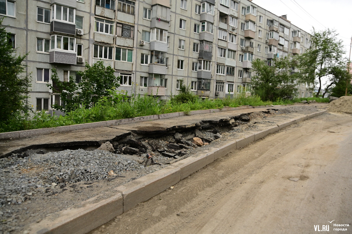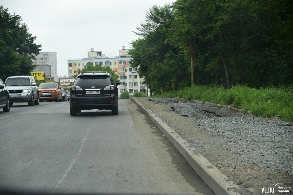 С конца июня по улице Котельникова во Владивостоке прокладывают электрокабель на стройку нового ЖК. Для этого здесь на время уничтожили несколько сотен метров нового тротуара, а теперь раскопали траншеи вдоль подъёма в сторону Красного Знамени, тоже отремонтированного в прошлом году. Машины едут по узкой дороге вдоль обрыва, объезжая бетонные блоки и катушки с кабелем. А в месте, где траншея пересекла Котельникова, осталась глубокая яма, которая уже несколько дней собирает пробки между 3-й Рабочей и Баляева.