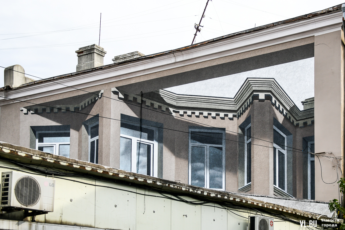 Когда стартуют аварийные работы, сколько выделят средств, планируется ли проводить их по всему периметру здания или только на фронтальном фасаде – оперативно редакции Новостей VL.ru ответить не смогли. То есть пока не понятно, пострадает ли стена с иллюзией во время ремонта в этом или следующем году. Допустить такое, конечно, не хотелось бы. В мэрии лишь добавили, что мурал нанесён по согласованию за внебюджетные средства. Поскольку фестиваль проводился на средства президентского гранта.