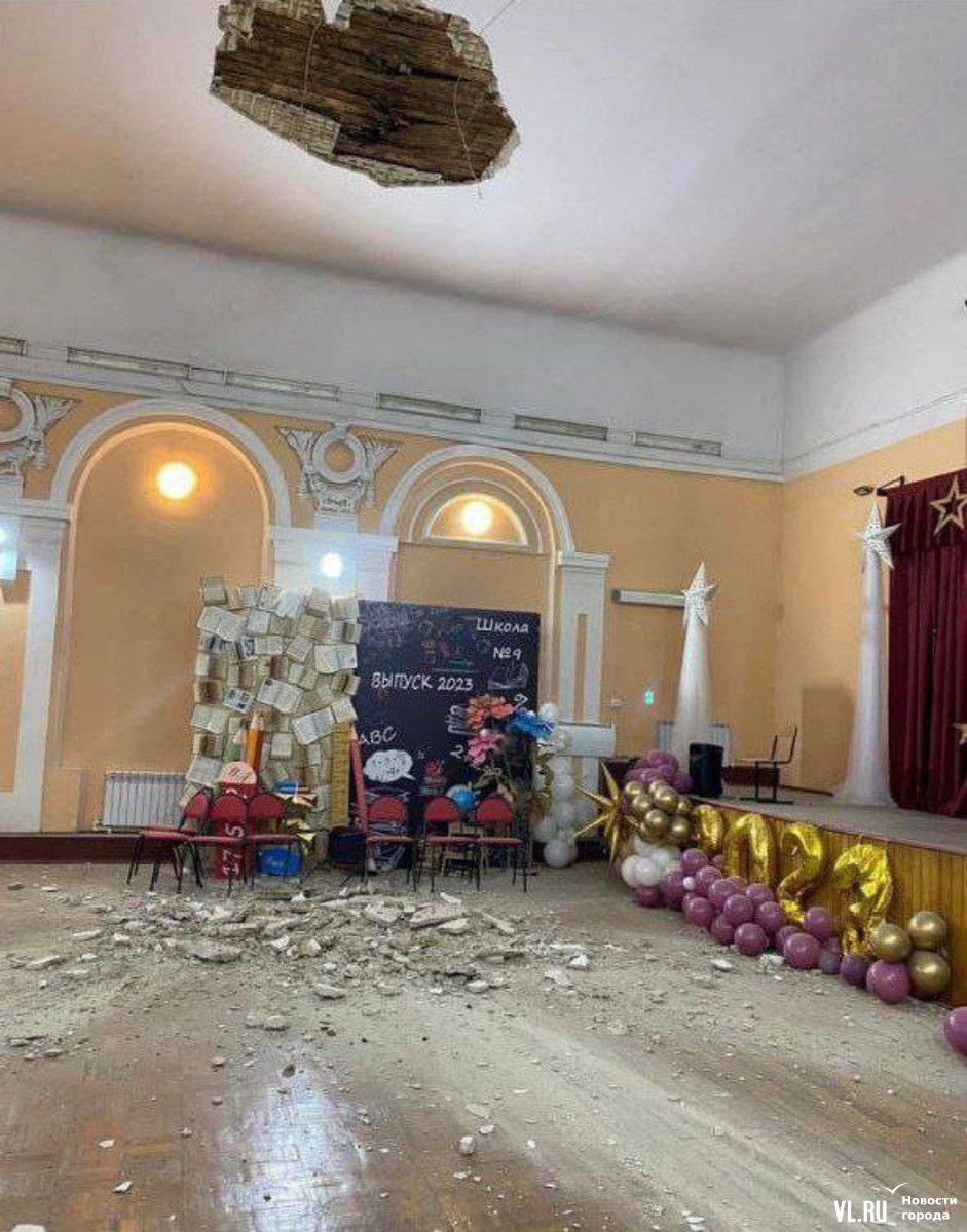 За неплохо выглядящим фасадом школы № 9 Владивостока (Пушкинская, 39) сложилась аварийная ситуация. В мае в здании, которому исполнилось 120 лет, рухнула часть потолка в актовом зале, а неделю назад части перекрытий обвалились уже в кабинете завучей в другом крыле. К счастью, обошлось без пострадавших. Родители стали бить тревогу ещё летом: тогда выяснилось, что в аварийном состоянии находятся и две несущие полуколонны на первом этаже, система вентиляции завалена кирпичом, а в подвал подтекают грунтовые воды и разрушают фасадную стену. Родители требуют от мэрии перевести учеников на дистанционное обучение и срочно начать ремонт. В администрации города объясняют, что вполне возможно обойтись без «дистанционки», аварийный ремонт пройдёт в ближайшее время, а капитальный провести сложно – здание является объектом культурного наследия.