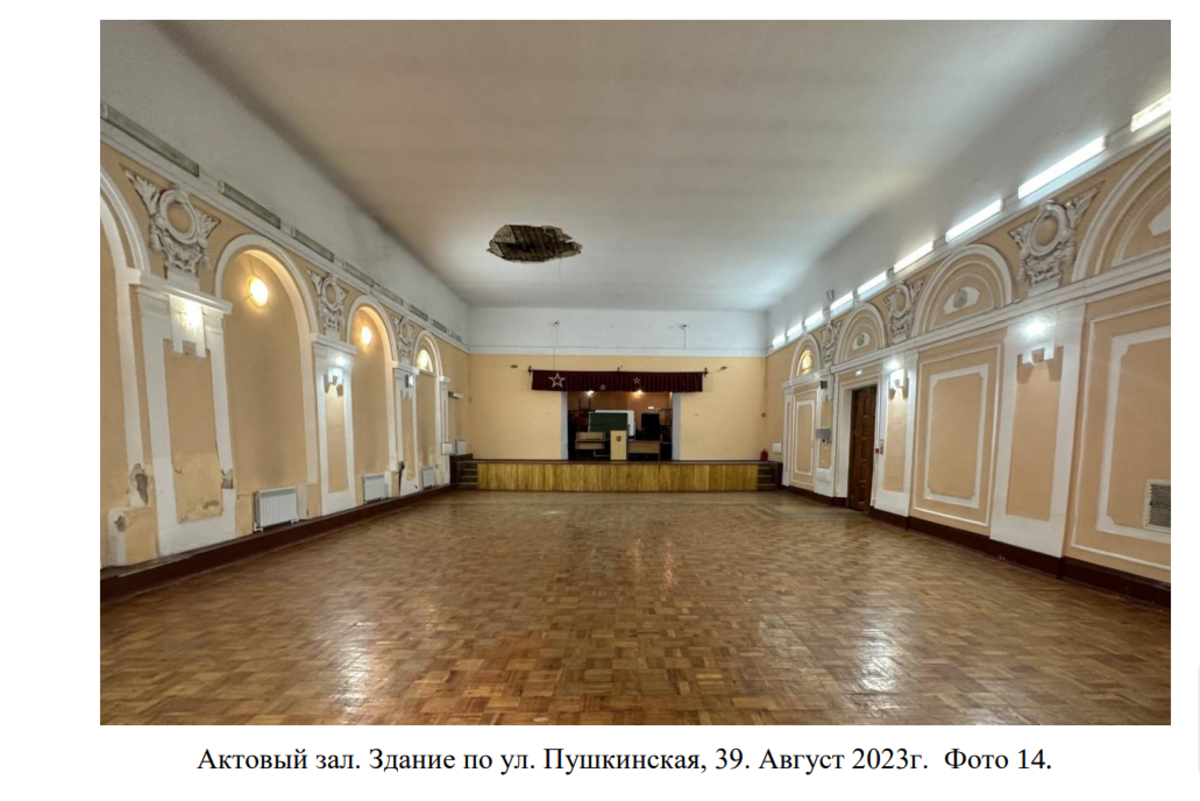 А в целом в аварийном и неудовлетворительном техническом состоянии находятся практически все основные элементы исследуемого строения. Помимо полной замены крыши, требуется ремонт полуколонн в техническом помещении на первом этаже, замена части перекрытия чердачного этажа над актовым залом, устройство дополнительных слуховых окон (для вентиляции крыши). Также в перечне необходимых работ – ремонт потолков и стен в помещениях с аварийными участками, устройство отмостки по периметру здания и прифундаментного дренажа, ремонт фасада здания и оборудование инфраструктуры, при которой маломобильные граждане смогут попадать на второй этаж.