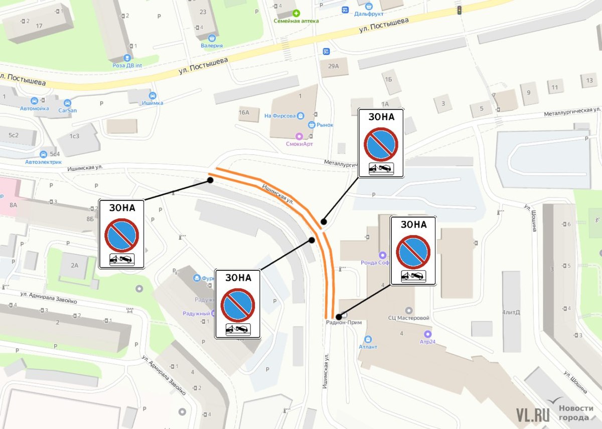 Управление дорог Владивостока сообщает о предстоящем изменении схемы дорожного движения на улице Ишимской. Для обеспечения беспрепятственного проезда транспорта здесь установят знаки «Зона с ограничением стоянки» совместно с табличками дополнительной информации «Эвакуация».