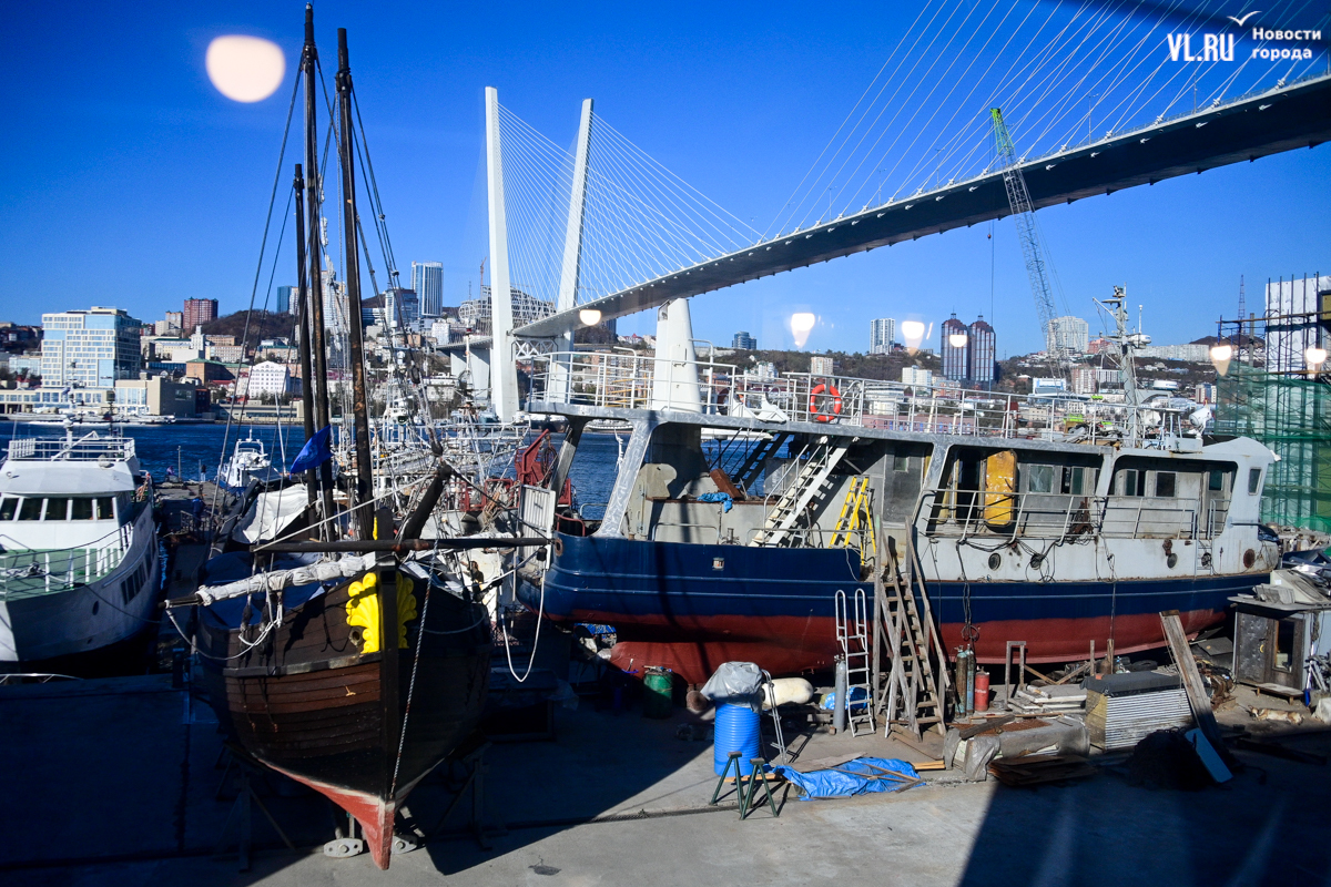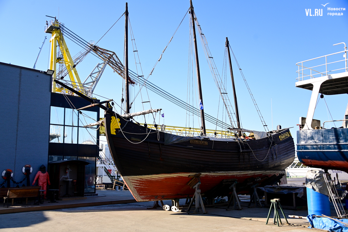 На территории много интересного. Например, здесь зимует ладья «Пилигрим», которой дали временную прописку, пока команда в небольшом отпуске. Реплику поморской ладьи XVIII века подняли на берег, потому что оставлять её без движения в воде надолго нельзя. В Японском море живут два вида червей-древоточцев, которые изведут любое попавшее в воду дерево. Потому и нет у нас деревянных находок. Вот на Балтике можно отыскать, к примеру, хорошо сохранившееся судно Петровских времён. У нас такое невозможно. Здесь же, на берегу, ещё одно судно, его сейчас строят. На нём будет шесть кают, и можно будет ходить в многодневные экспедиции. На поисковом катере «Маяк», который задействуют сейчас, такой возможности нет – очень тесно.