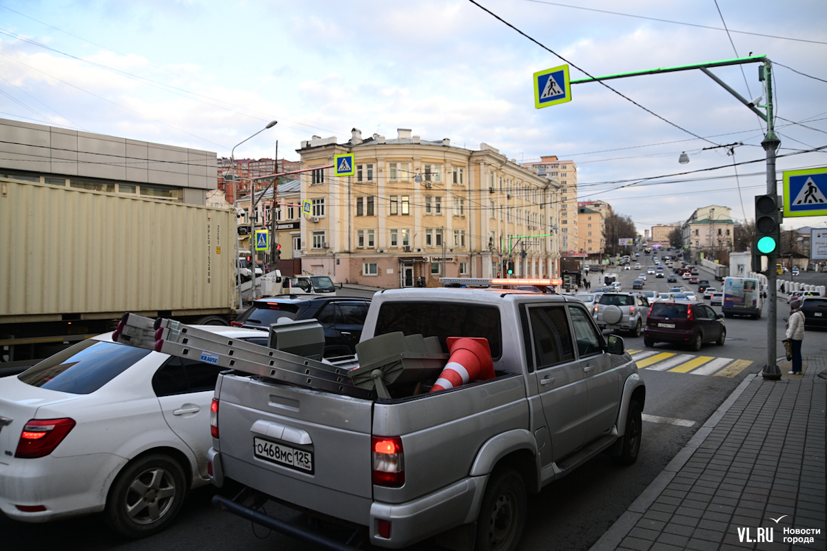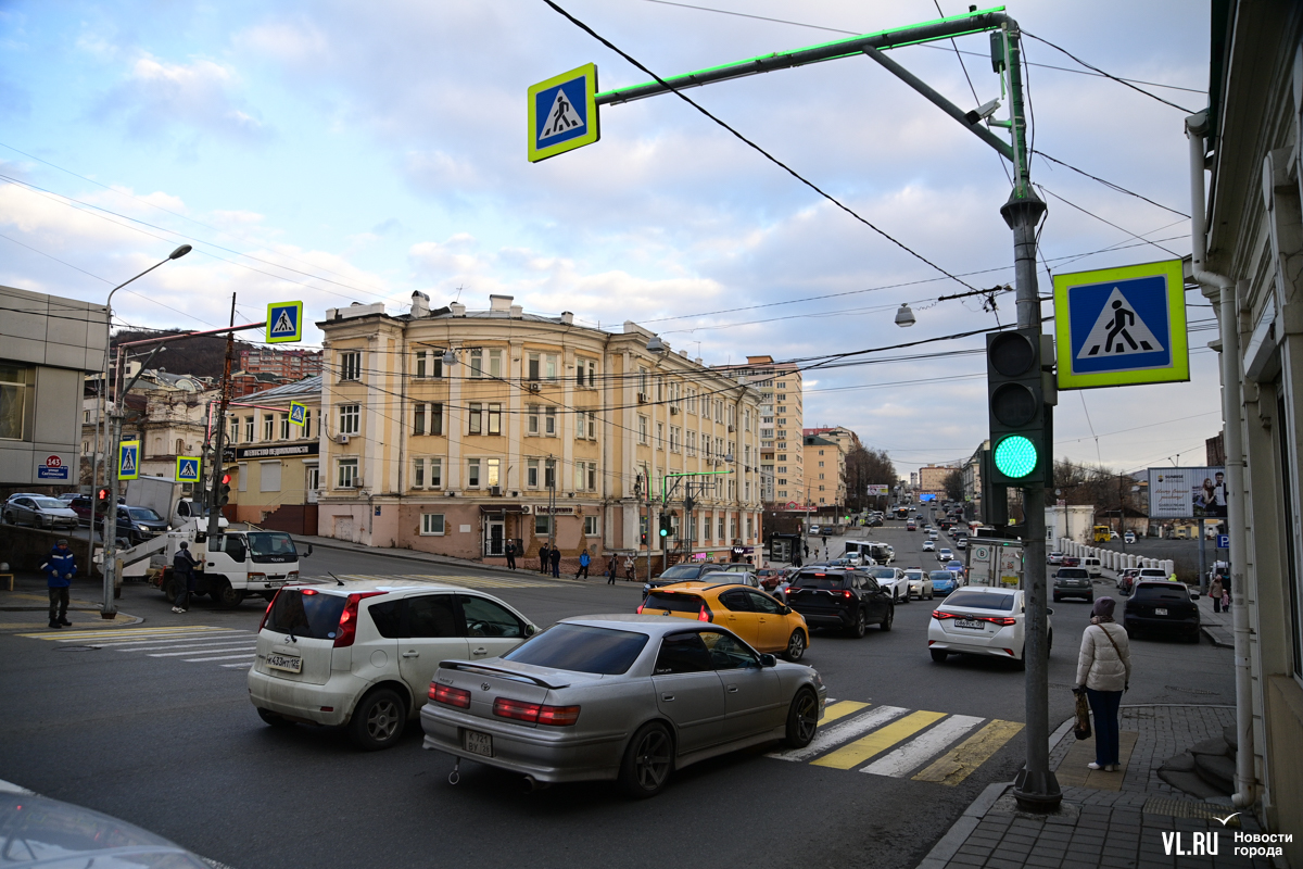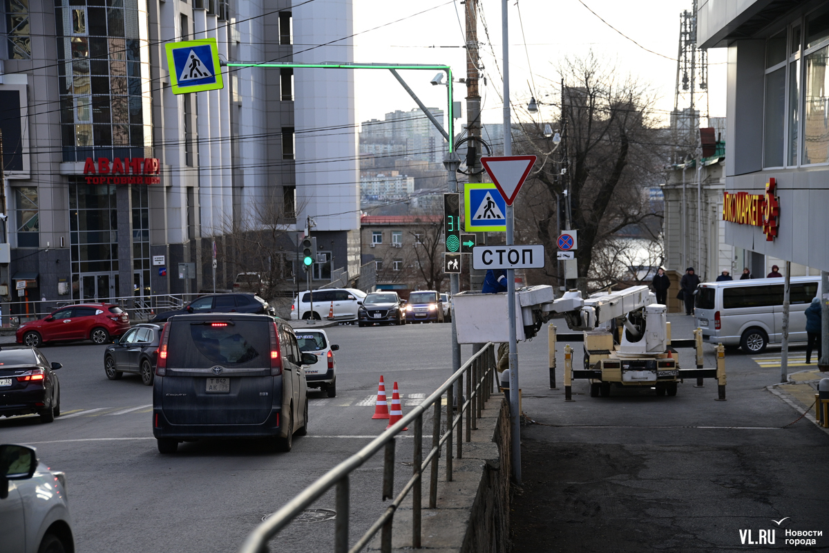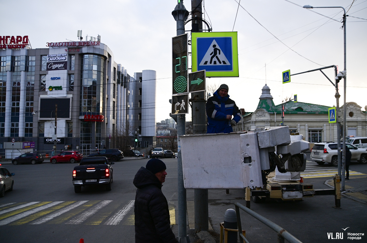 Специалисты Центра организации дорожного движения Владивостока устанавливают новые секции светофоров на перекрёстке улиц Капитана Шефнера и Светланской. В отличие от привычных красных, жёлтых и зелёных, эти будут иметь бело-лунный свет и не предписывать ехать или стоять, а предупреждать о пешеходах на переходе.