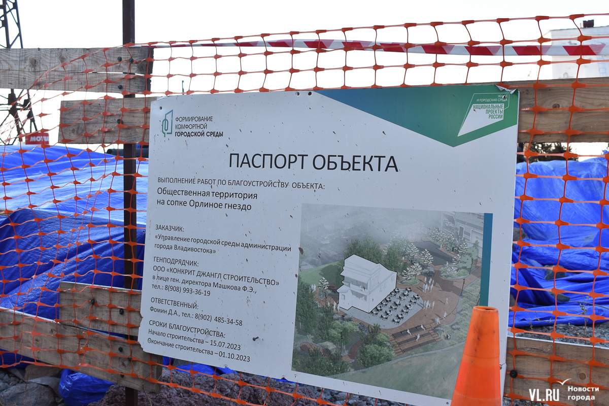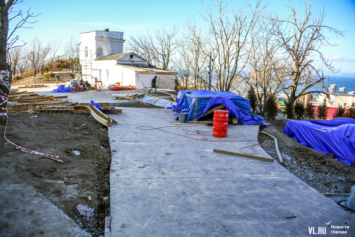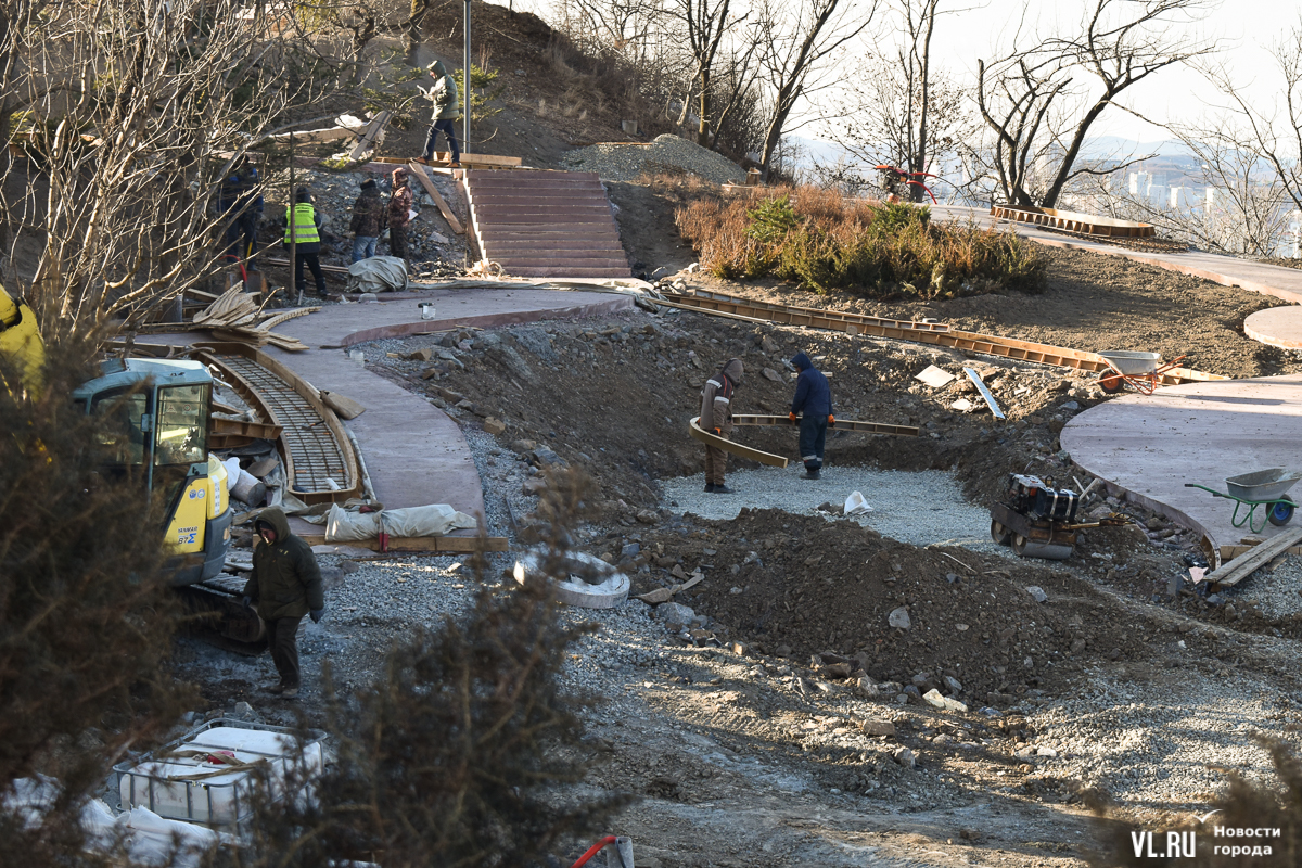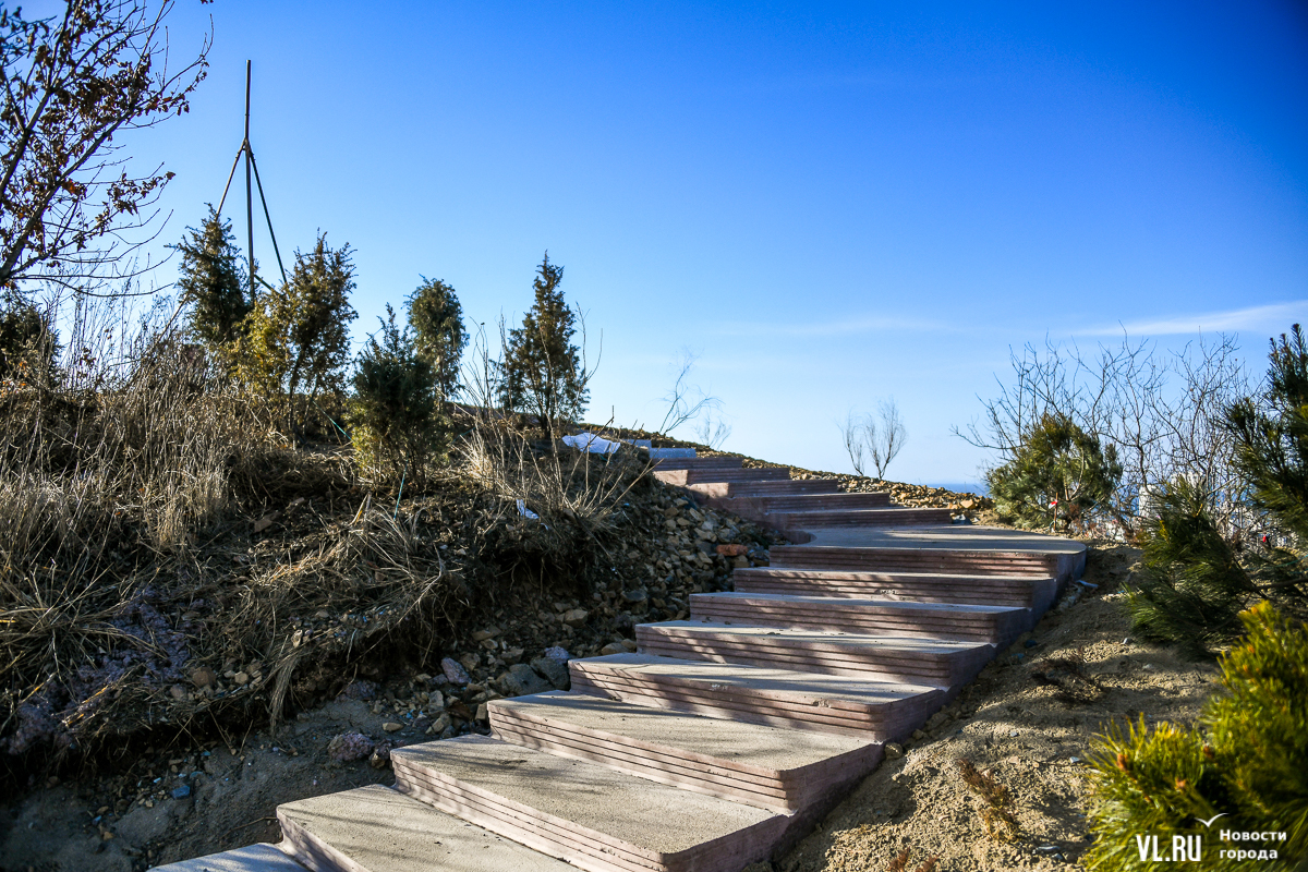Подрядчик продолжает строительство видовой площадки за ЖК «Каскад» (Прапорщика Комарова, 58) на Орлиной сопке. Сейчас готова часть бетонных дорожек, лестница к новой видовой, высажены несколько деревьев, но работы ещё много. При этом крайний срок по контракту истёк почти два месяца назад. В пресс-службе мэрии уточнили, что подрядчик планирует сдать объект до конца года.